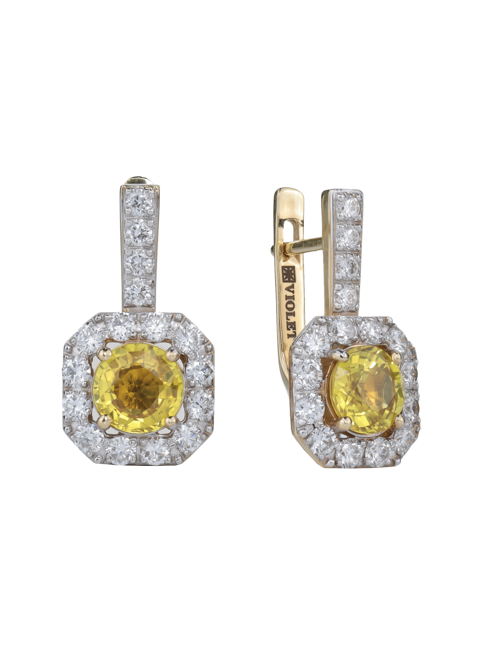 Элегантные серьги из коллекции De Luxe Бриллианты — Citrino станут воплощением вашего безупречного стиля. В основе изделия лежит лимонное золото 585 пробы, чей благородный солнечный оттенок идеально подчеркивает яркость драгоценных камней. Основой композиции выступают сапфиры желтого цвета круглой огранки, которые притягивают взгляд своим глубоким и насыщенным сиянием.