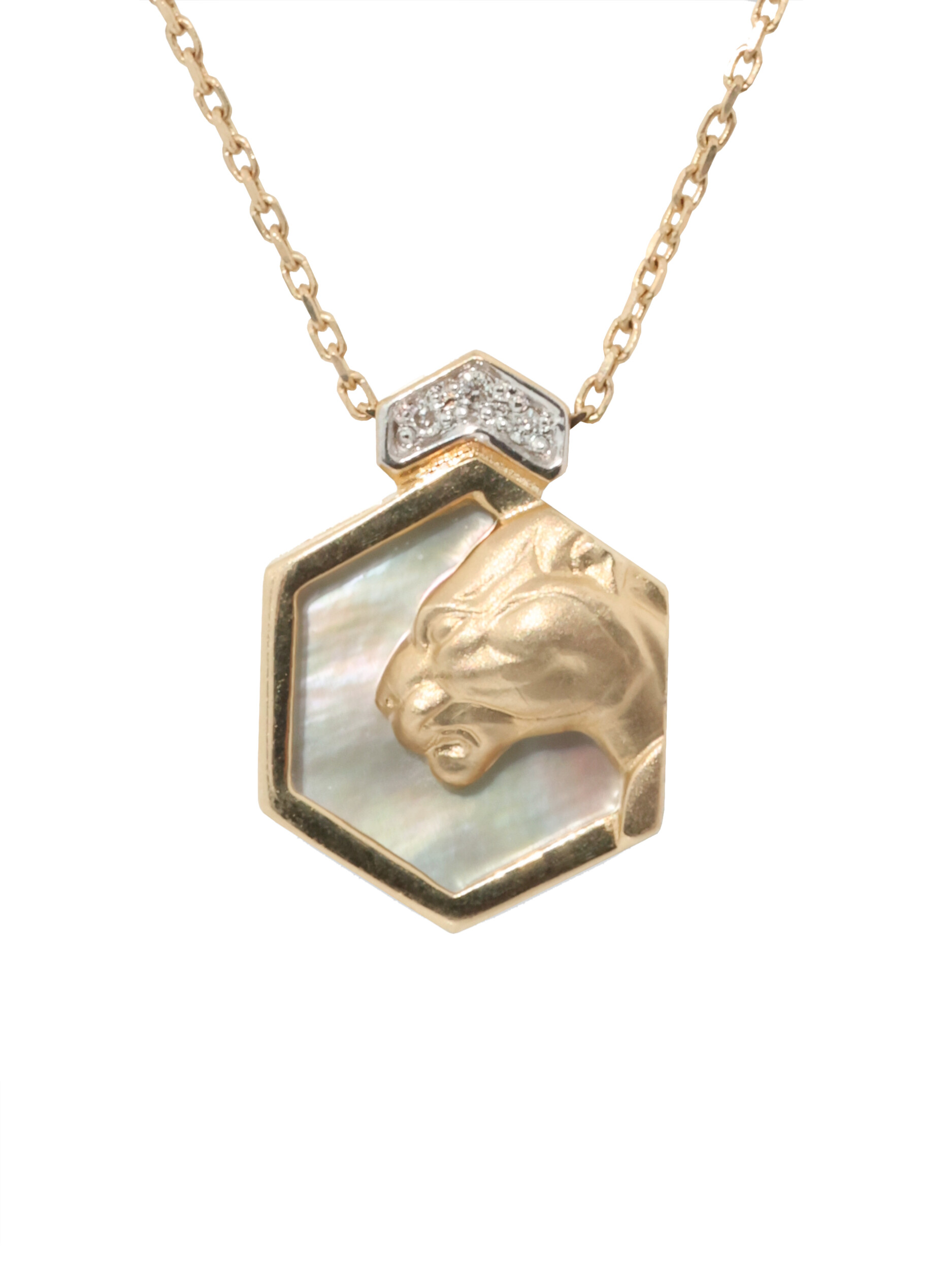Данная модель, украшенная 4 вставками, отличается гармоничным сочетанием драгоценных материалов. Использование перламутра делает украшение многогранным и живым, подчеркивая статусность изделия. Это колье универсально и подойдет как для женщин, так и для мужчин, которые ценят уникальные аксессуары с характером. Изделие станет ярким акцентом в вечернем образе или статусным дополнением повседневного стиля. Также это украшение входит в серию комплектов, что позволяет легко подобрать дополнение к вашему ювелирному гардеробу. Выбирая колье с пантерой, вы приобретаете аксессуар, который подчеркнет вашу индивидуальность и безупречный вкус.