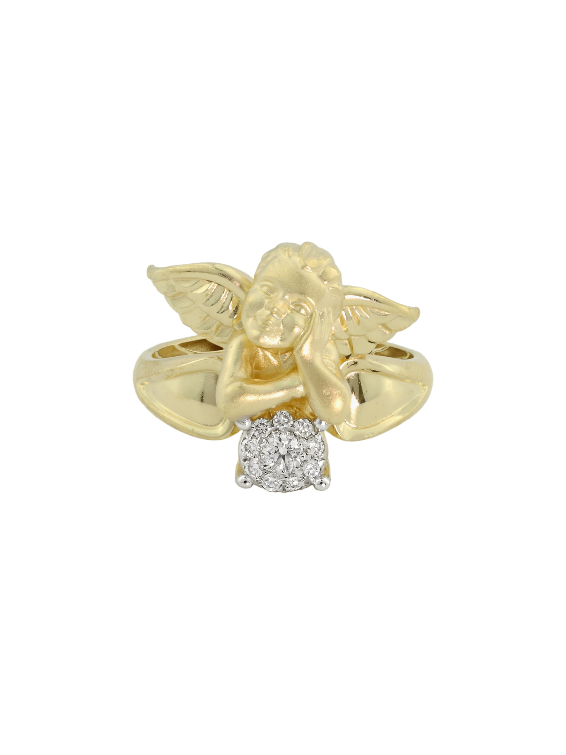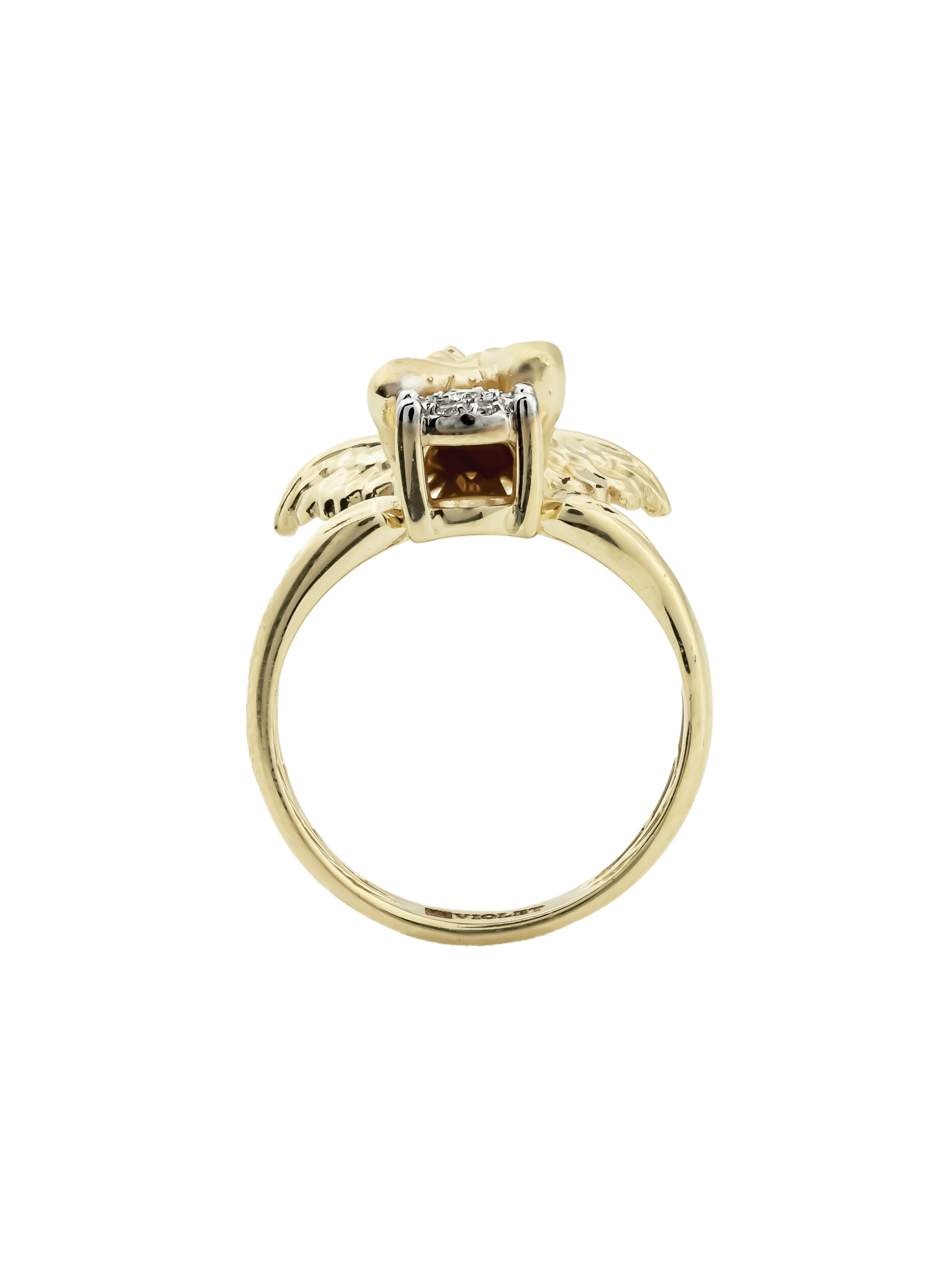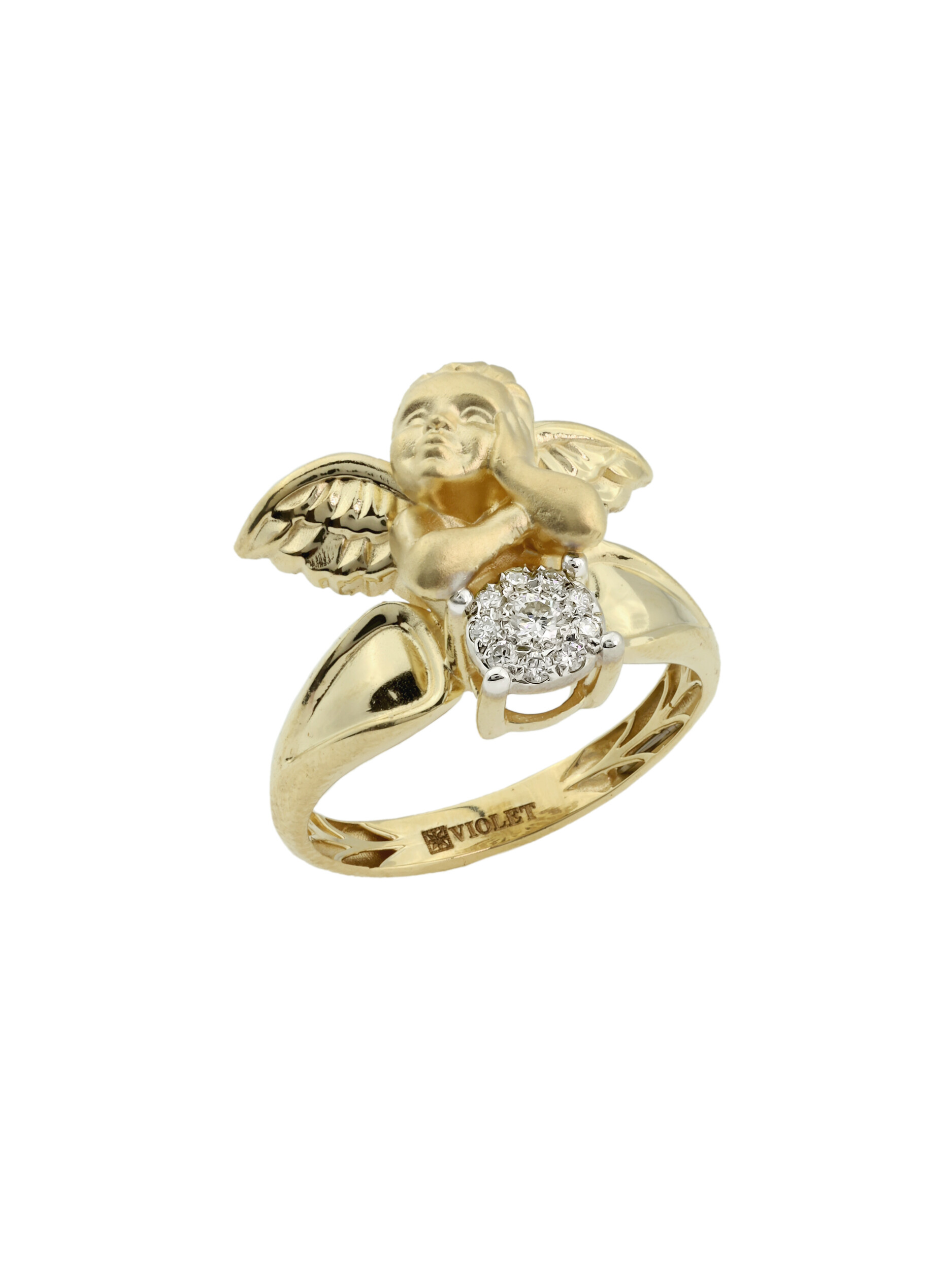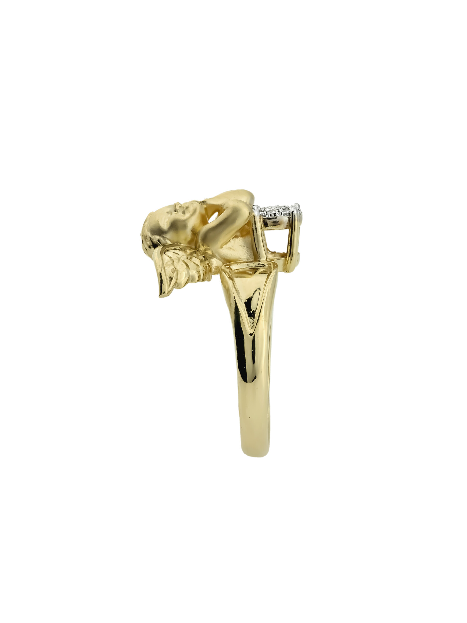 Кольцо из лимонного золота с бриллиантами — воплощение изысканности и утонченного вкуса. Это украшение из коллекции De Luxe — Купидоны приковывает взгляд своим уникальным дизайном: центральным элементом изделия является фигурка купидона, выполненная с особой тщательностью. Ювелирная композиция дополнена сиянием десяти круглых бриллиантов белого цвета, которые гармонично сочетаются с теплым оттенком лимонного золота 585 пробы.