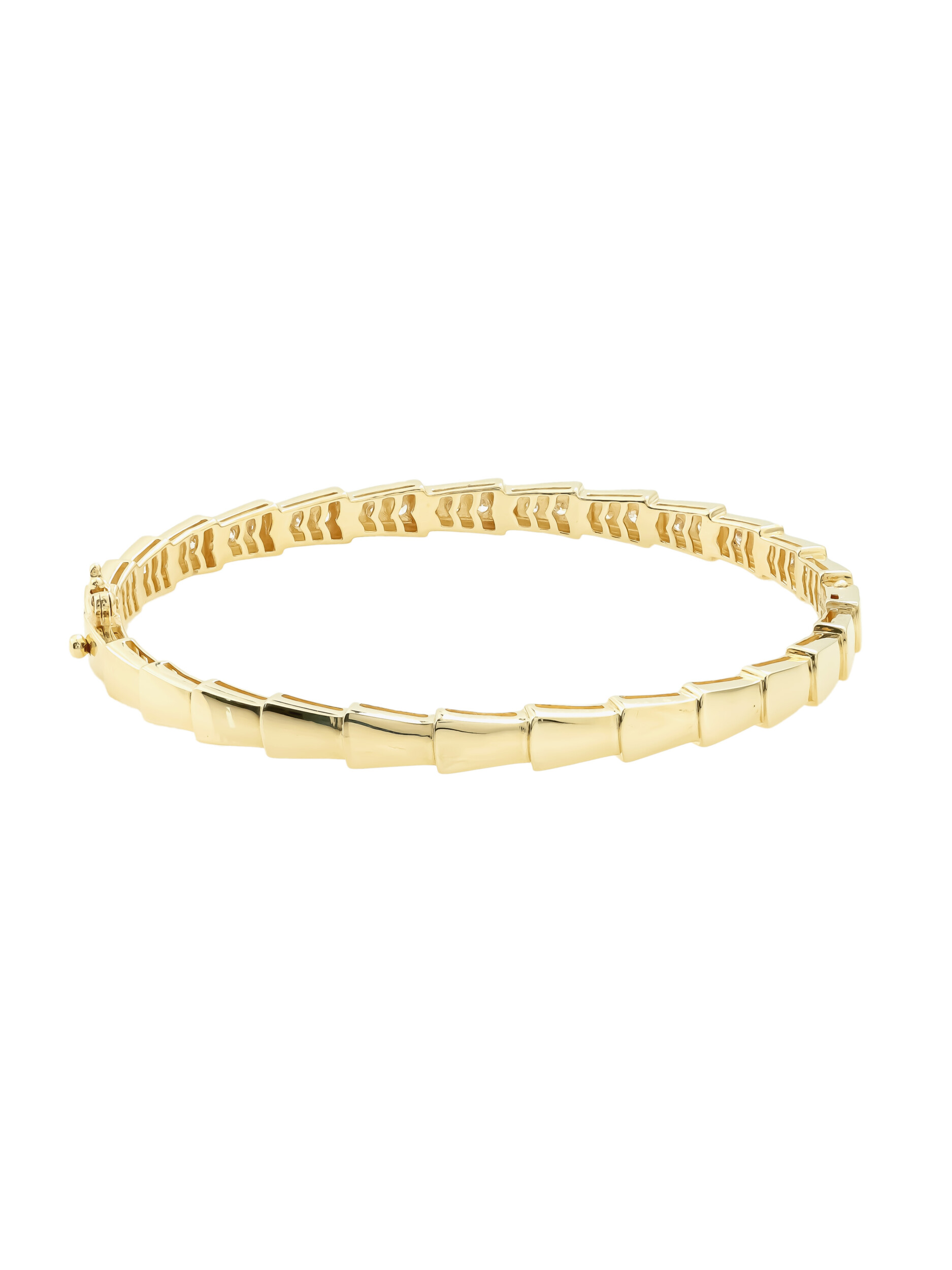 В центре внимания — великолепная инкрустация. Браслет украшен 28 бриллиантами круглой огранки. Белый цвет вставок эффектно контрастирует с теплым оттенком красного золота, создавая завораживающую игру света при каждом движении. Общее исполнение изделия отличается лаконичностью и чистотой линий, что позволяет гармонично сочетать его с другими украшениями. При желании вы можете дополнить этот браслет другими изделиями из комплекта, создавая завершенный и стильный ансамбль.