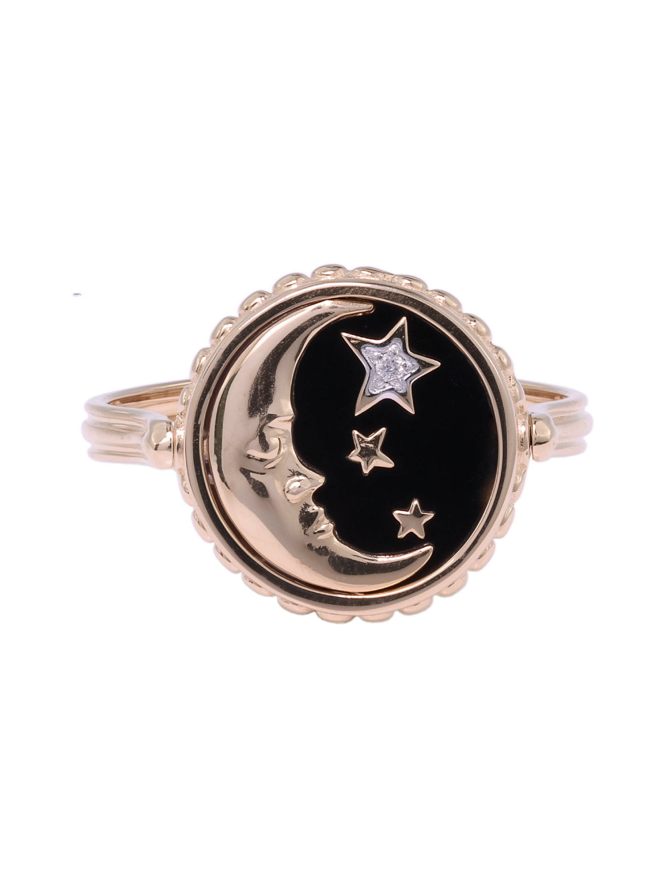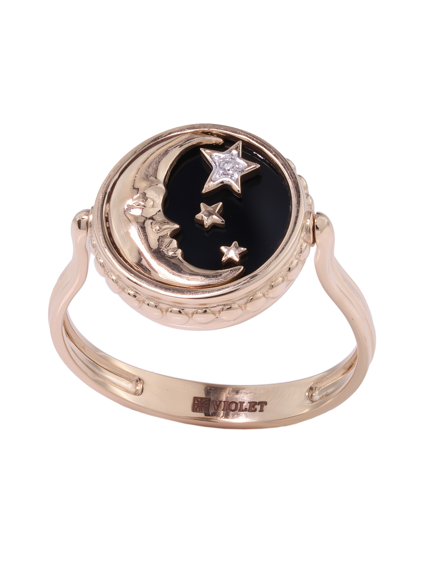 Эффектное кольцо из красного золота 585 пробы — гармоничное сочетание ювелирного искусства и мистической эстетики. Модель входит в коллекцию De Luxe — Солнце и Луна, вдохновленную магией небесных светил. Центральный элемент украшения выполнен в оригинальном дизайне Солнце/Луна, создавая интригующий образ, который одинаково органично дополнит стиль как женщин, так и мужчин. Глубокий черный фон оникса подчеркивает изящество композиции, в которой сияют три драгоценные вставки круглой формы: благородные бриллианты, искрящиеся белым светом, и нежный перламутр.