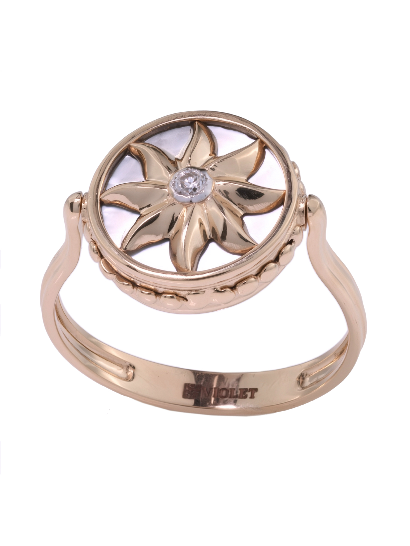 Кольцо из золота c бриллиантами, ониксом и перламутром