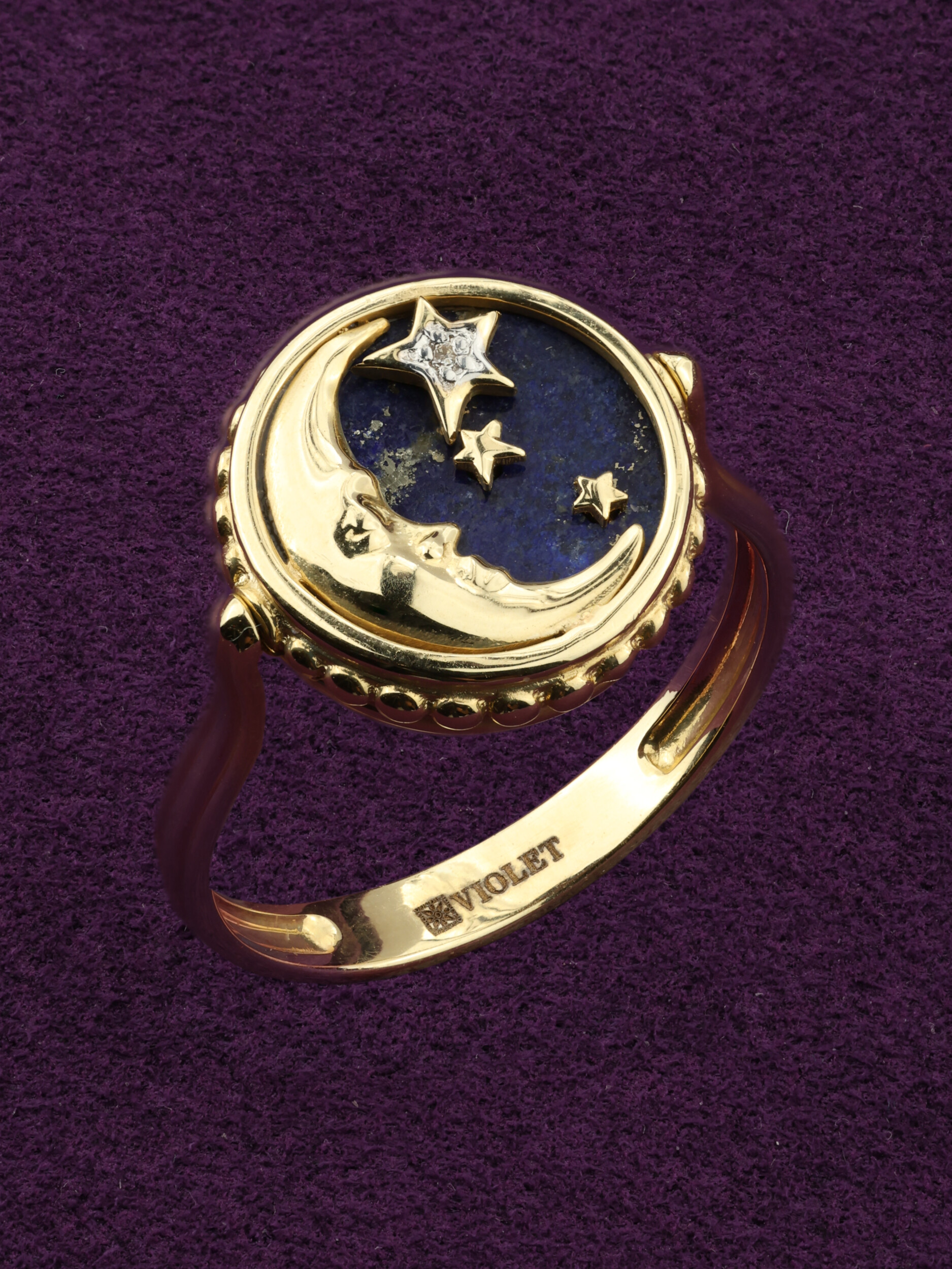 Кольцо из лимонного золота 585 пробы из коллекции De Luxe — Солнце и Луна — это ювелирный шедевр, воплощающий магию ночного неба. Центральная композиция украшения выполнена в оригинальном дизайне Солнце и Луна, где насыщенный синий цвет лазурита служит глубоким фоном для небесных светил. Искусная работа мастеров подчеркивает контраст холодного перламутра, загадочного синего лазурита и ослепительного блеска бриллиантов, которые ярко сияют на фоне драгоценного металла.