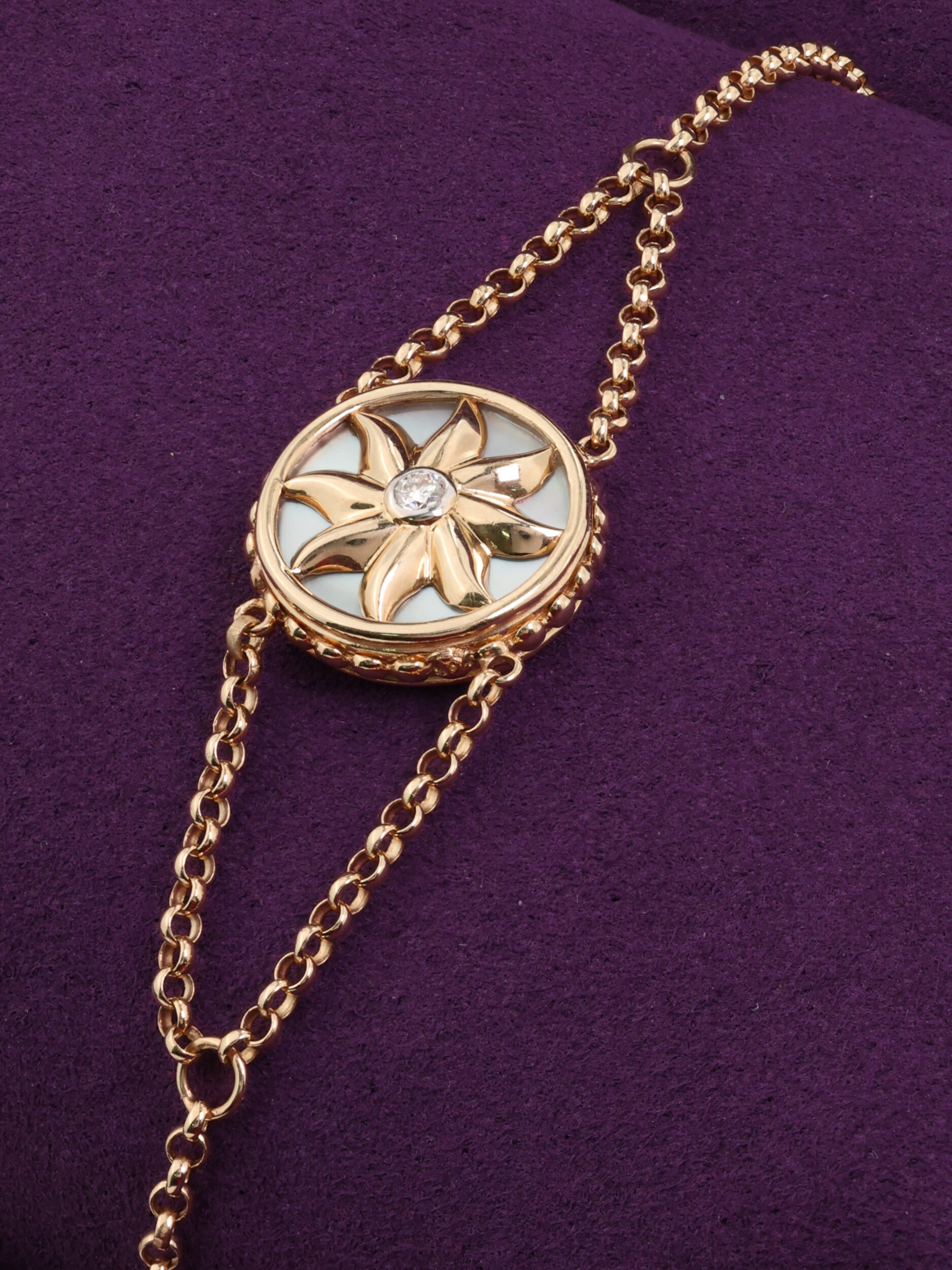 Браслет из золота c бриллиантами, ониксом и перламутром