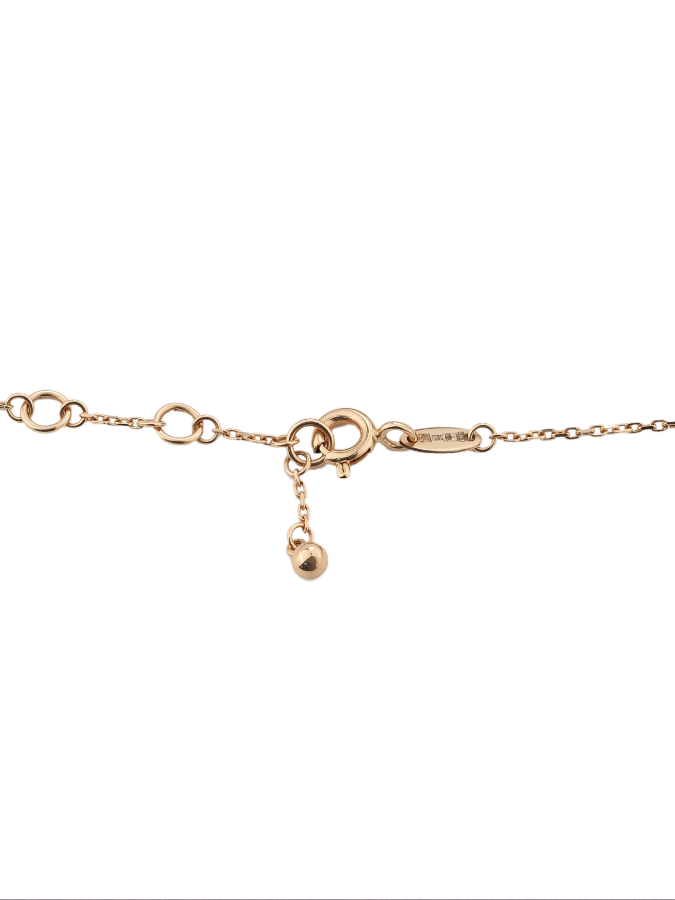 Изысканный браслет из красного золота 585 пробы — это воплощение гармонии и небесной красоты. Ювелирное украшение из серии De Luxe — Солнце и Луна выполнено в чарующем дизайне «Солнце и Луна», который придает образу нотки загадочности и утонченного стиля. Центральный элемент круглой формы мастерски сочетает теплый блеск драгоценного металла с глубиной контрастных вставок: благородного черного оникса и сверкающего белого бриллианта.