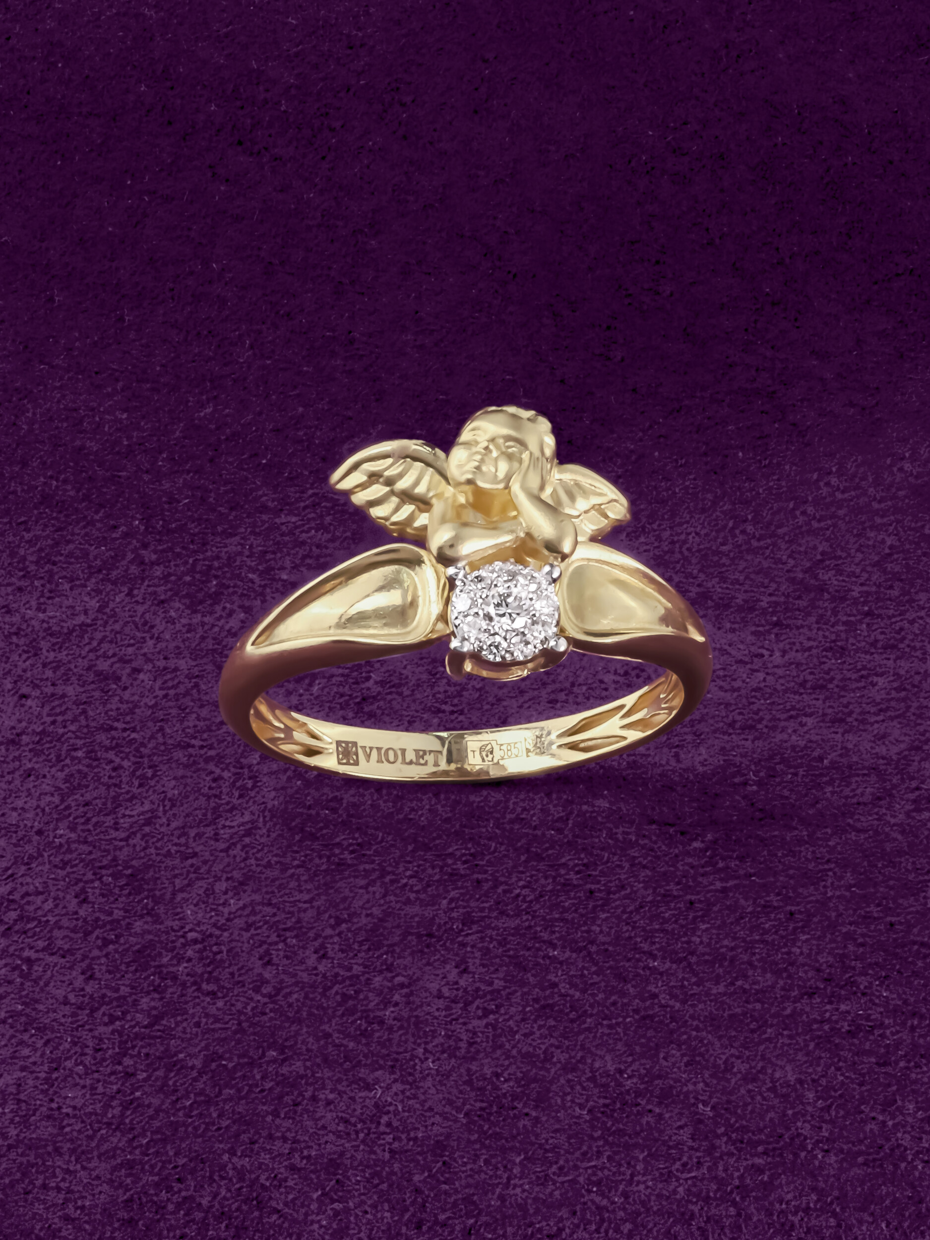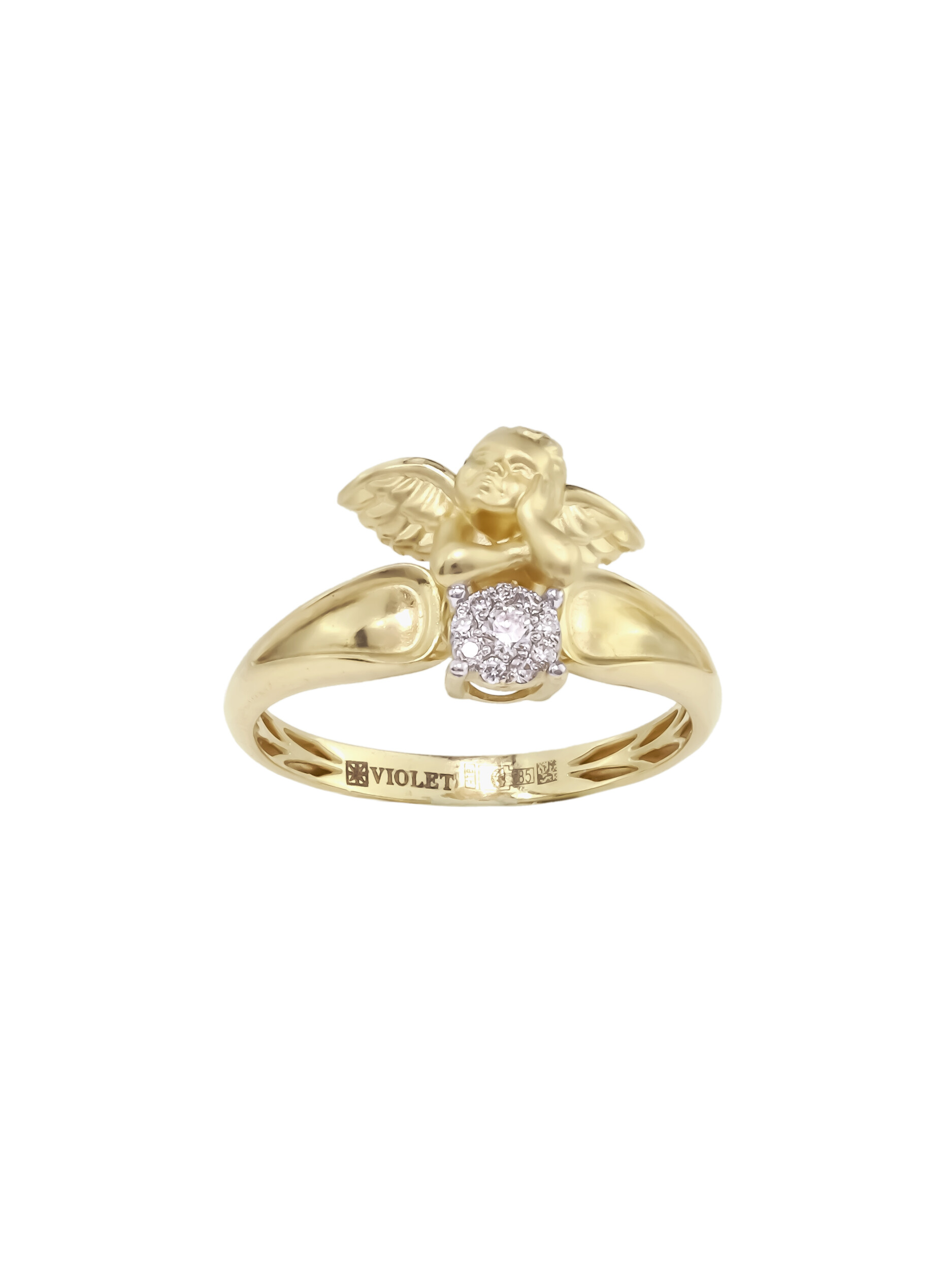 Представляем вашему вниманию изысканное кольцо, выполненное из благородного лимонного золота 585 пробы. Украшение из коллекции De Luxe — Купидоны станет ярким акцентом в вашем образе, привлекая внимание своим необычным и глубоким дизайном. Центральным элементом композиции является искусная фигурка купидона, которая придает изделию романтичный и возвышенный характер.