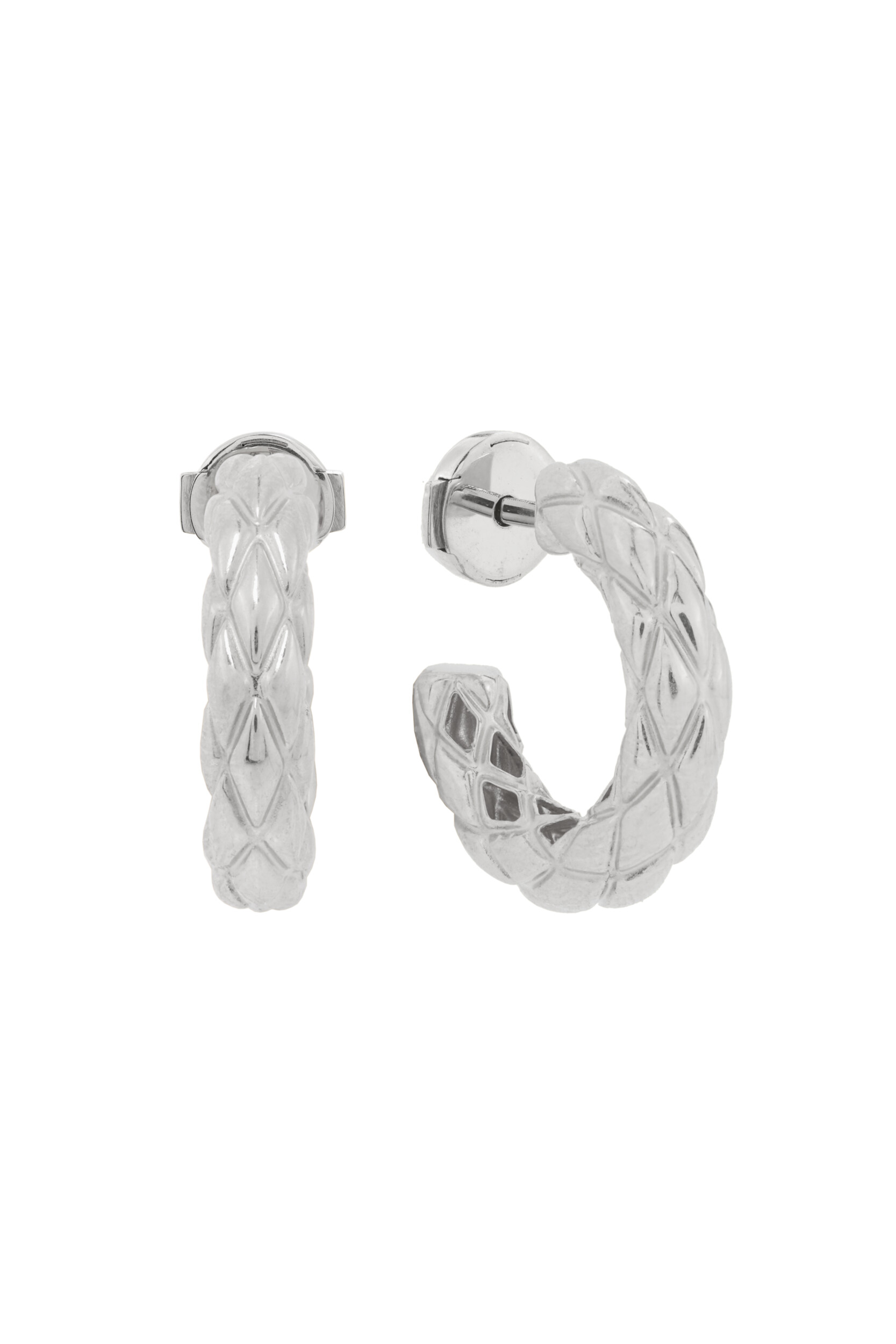 Откройте для себя совершенство ювелирного искусства с этими серьгами из белого золота, представленными в коллекции Vioretty — Congo. Это украшение воплощает в себе лучшие традиции итальянского стиля, где лаконичность форм встречается с выразительной фактурной отделкой. Сложный геометрический узор поверхности создает завораживающую игру света, подчеркивая благородный холодный блеск металла.