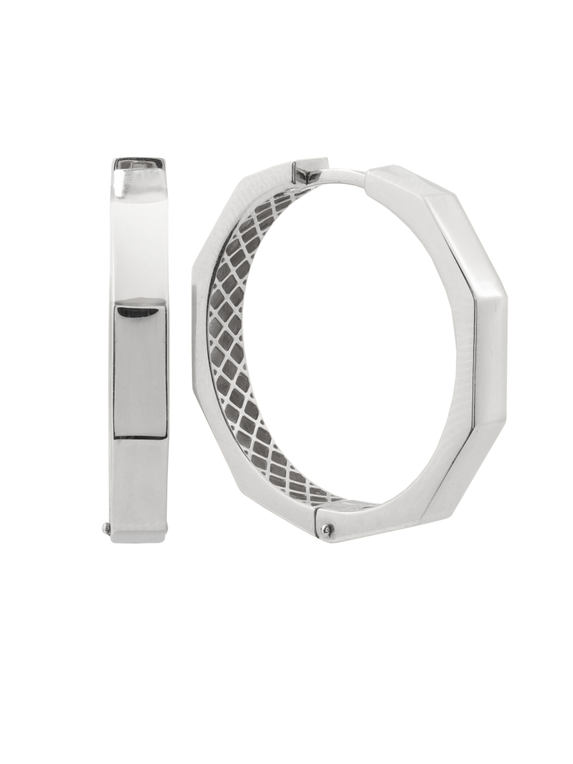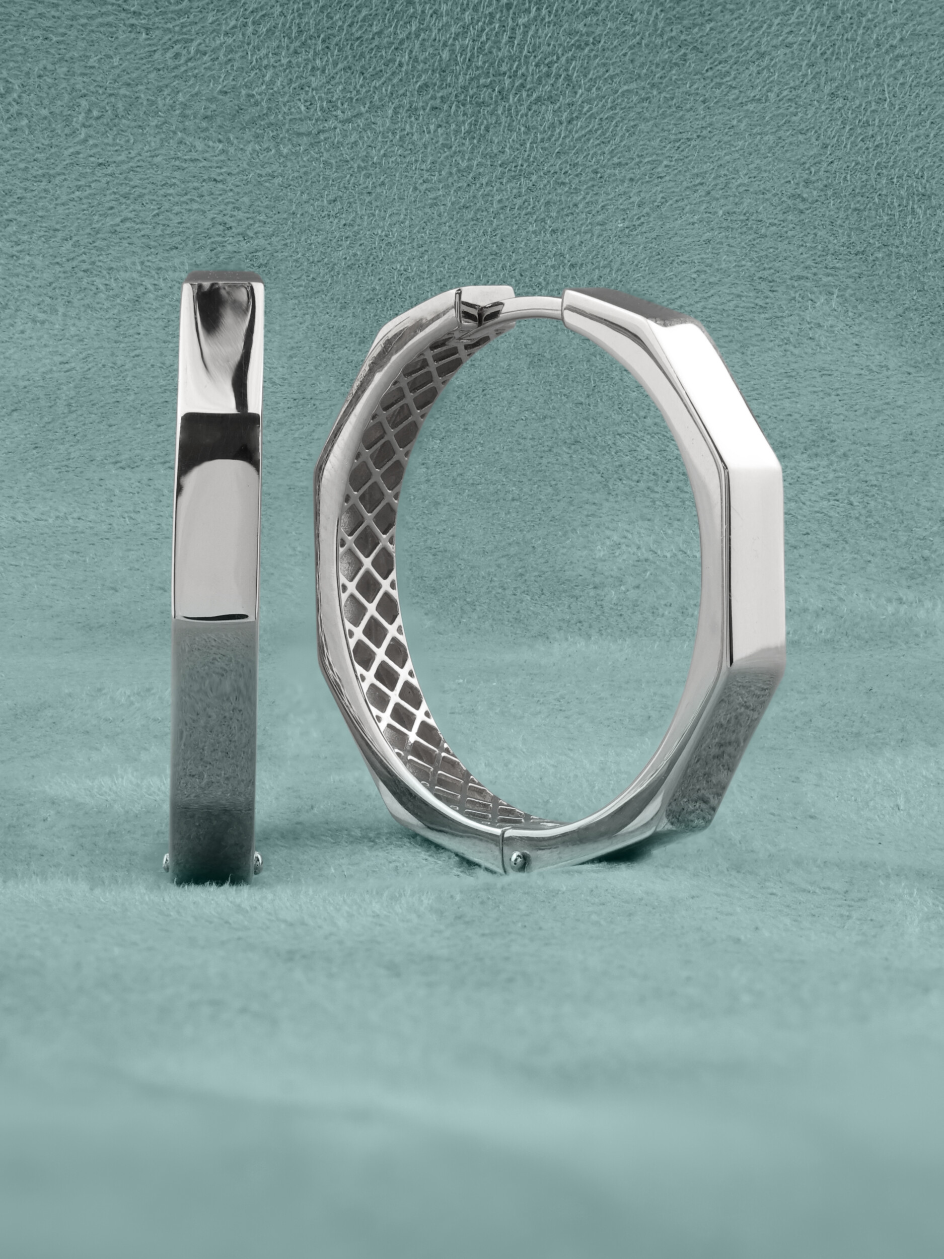 Данная модель серег — конго выполнена в оригинальной геометрической форме, которая выделяется на фоне классических украшений. Внутренняя сторона изделия дополнена детальной текстурой, придающей конструкции особую эстетику и завершенность. Эти серьги — универсальный аксессуар: они одинаково стильно смотрятся как на женщинах, так и на мужчинах, подчеркивая индивидуальность и вкус своего обладателя.