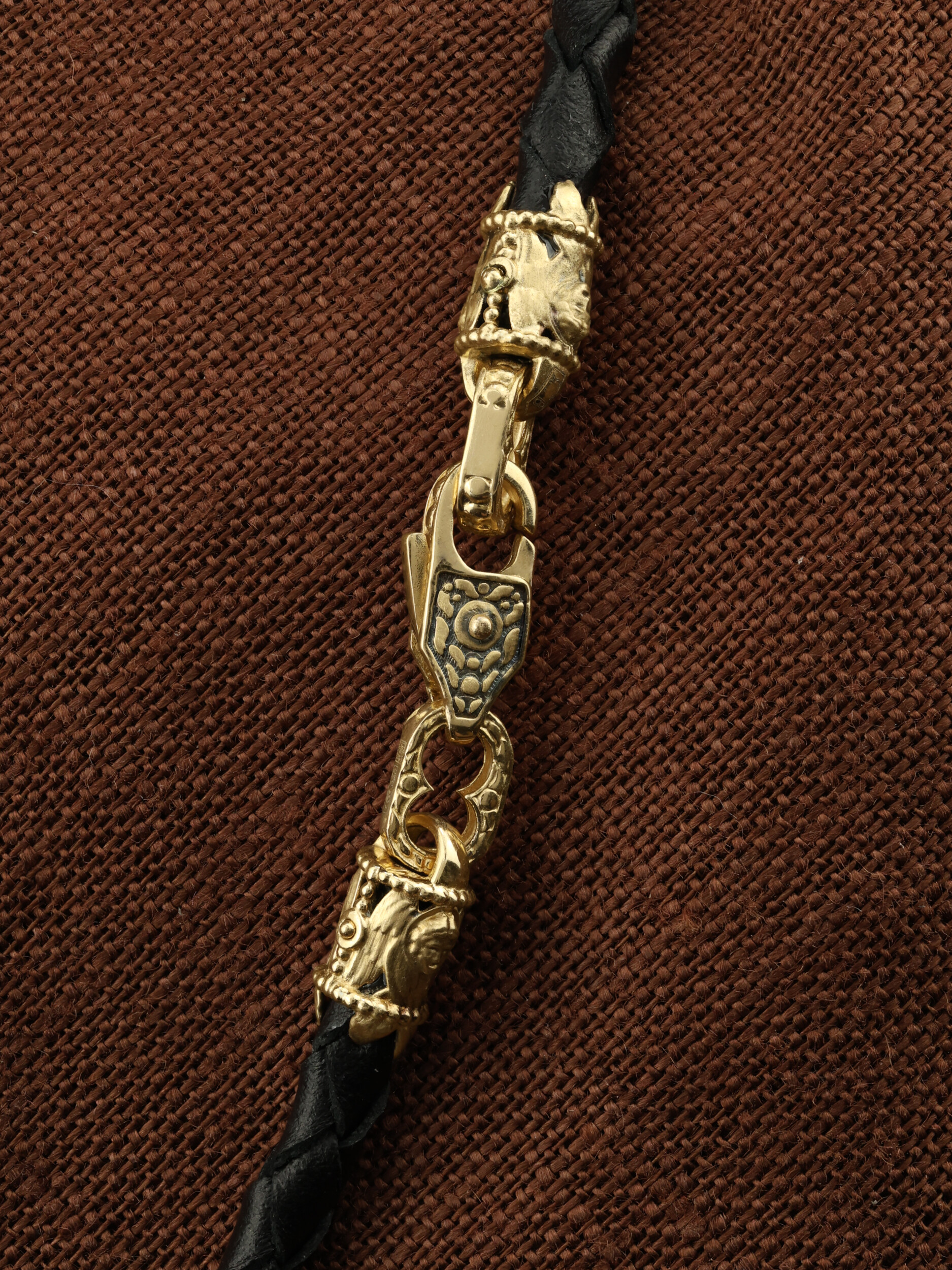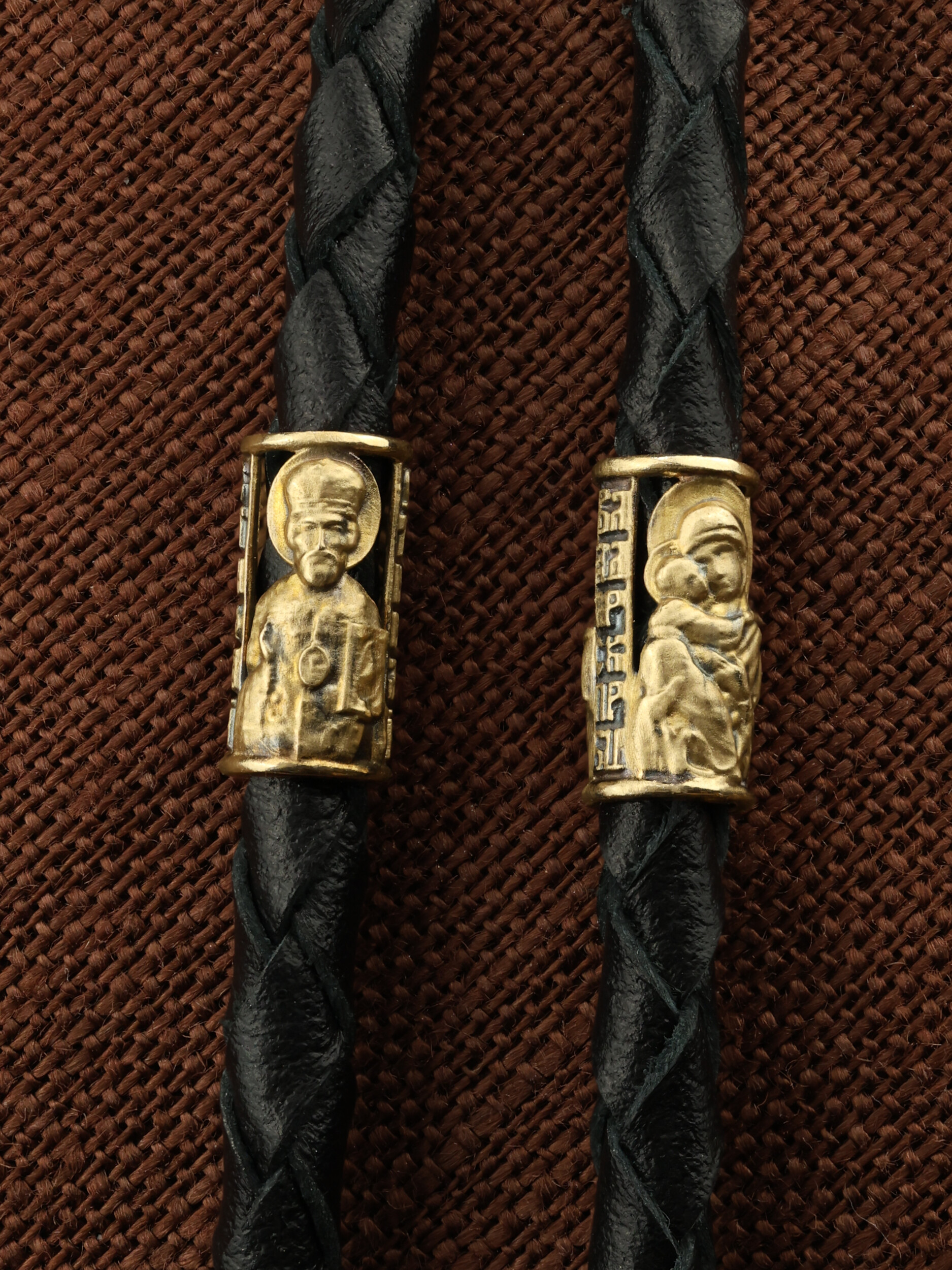 Гайтан из лимонного золота c кожаным шнурком
