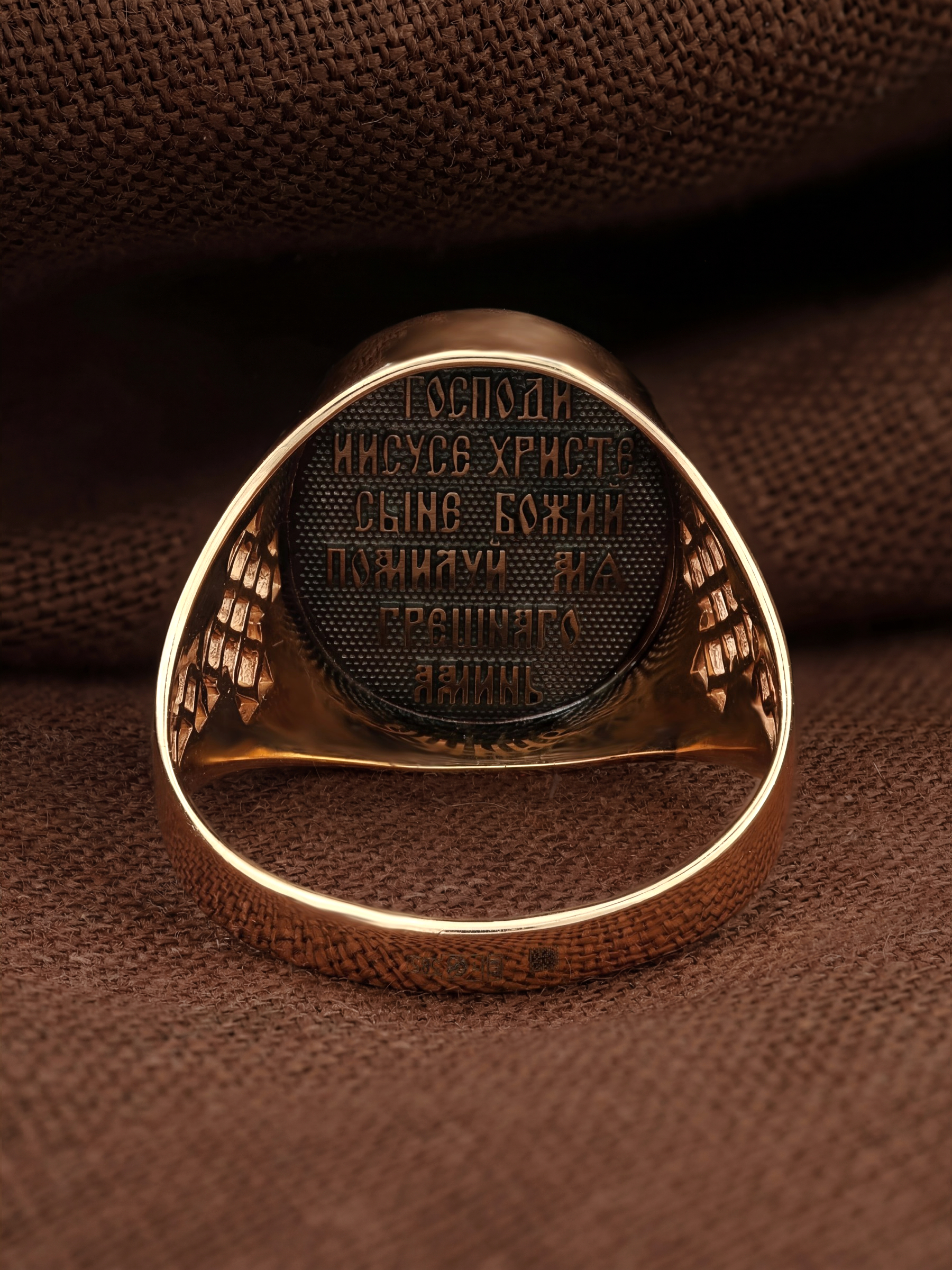 С внутренней стороны кольца выгравирована молитва: «Господи, Иисусе Христе, Сыне Божий, помилуй меня грешнаго.»