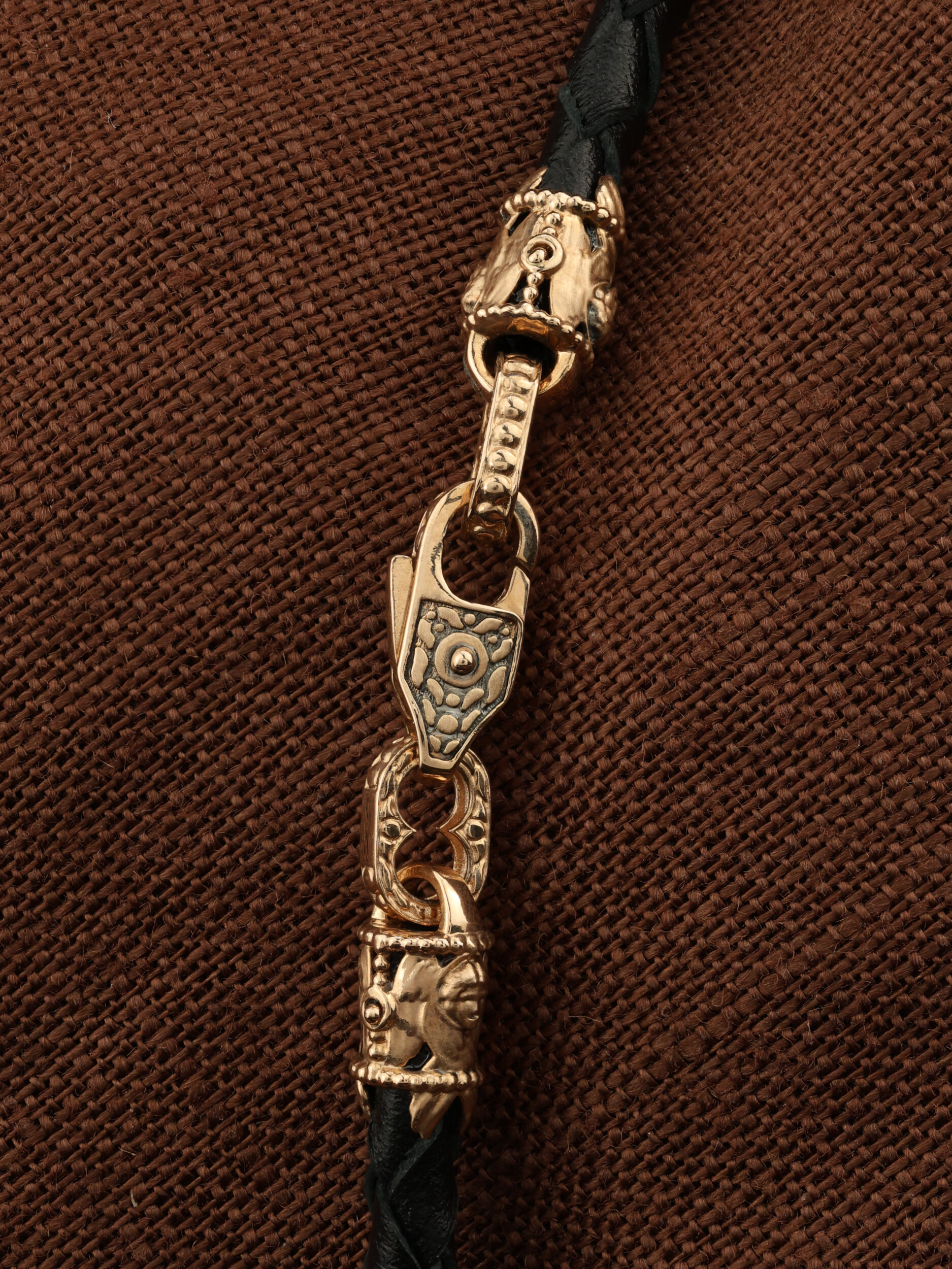 Гайтан из золота c кожаным шнурком