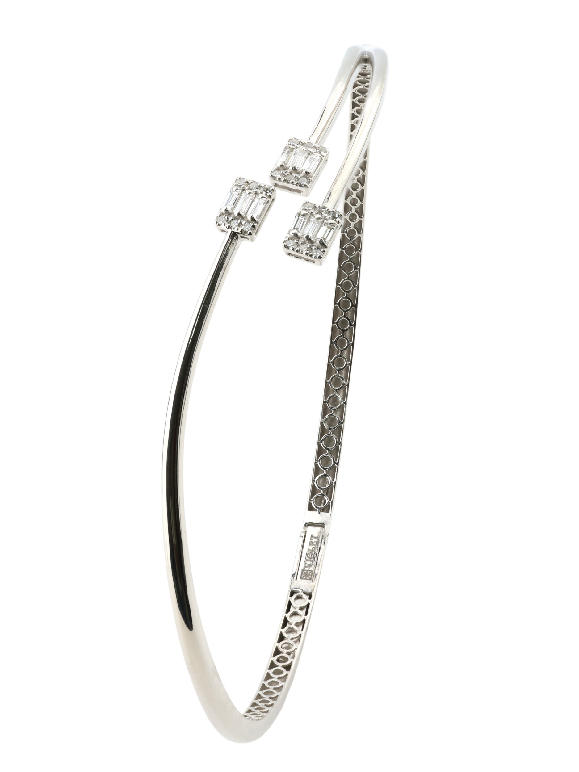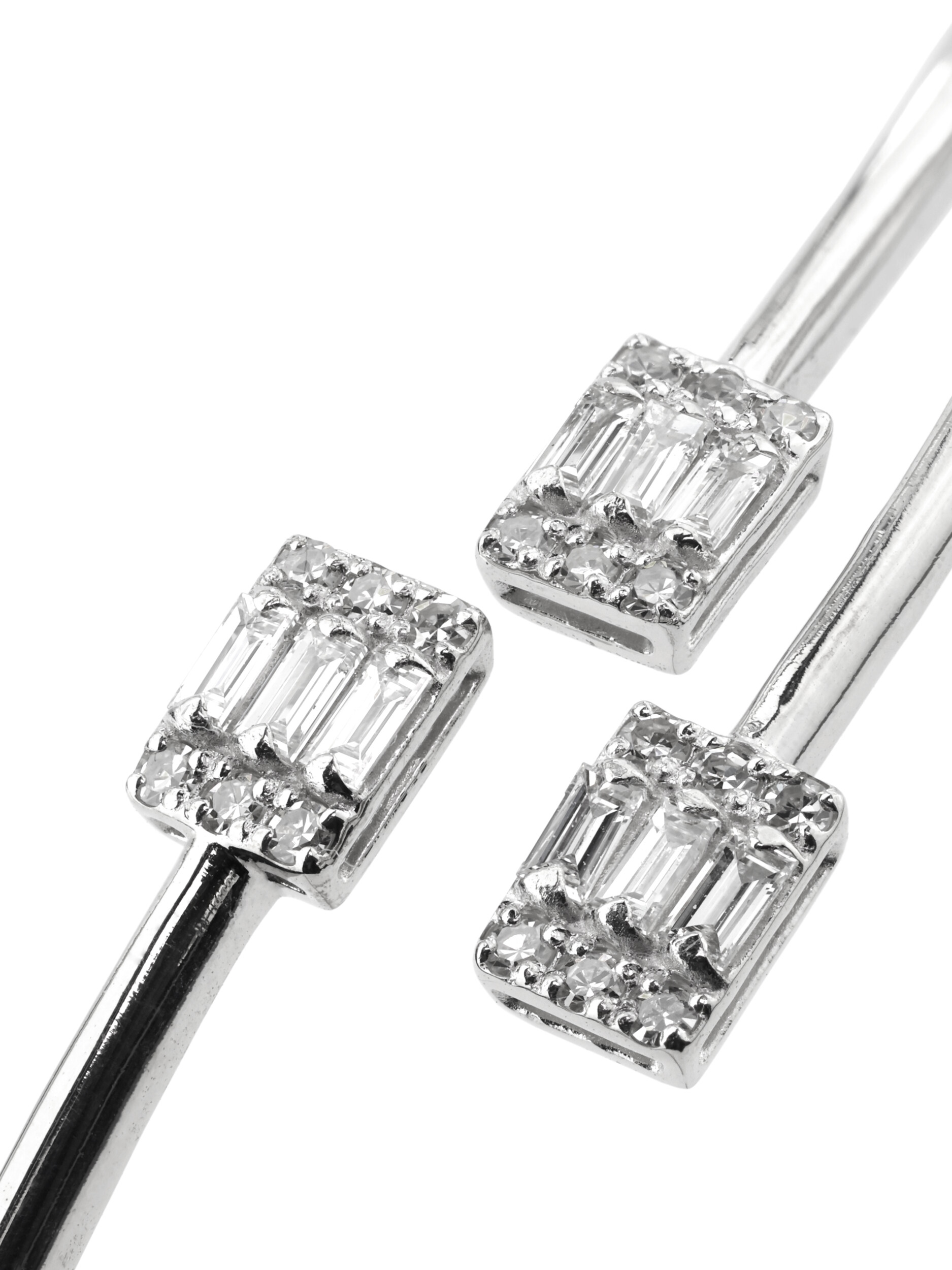 Элегантный браслет из белого золота 585 пробы — это воплощение современного ювелирного искусства, созданное для тех, кто ценит лаконичность и благородный блеск драгоценных металлов. Данное украшение из коллекции De Luxe Бриллианты — Baguette отличается оригинальным дизайном: разомкнутая форма браслета дополнена изысканными акцентами, которые приковывают взгляд своей геометрической выверенностью. Белое золото идеально подчеркивает холодное сияние вставок, создавая гармоничный и сдержанный образ.