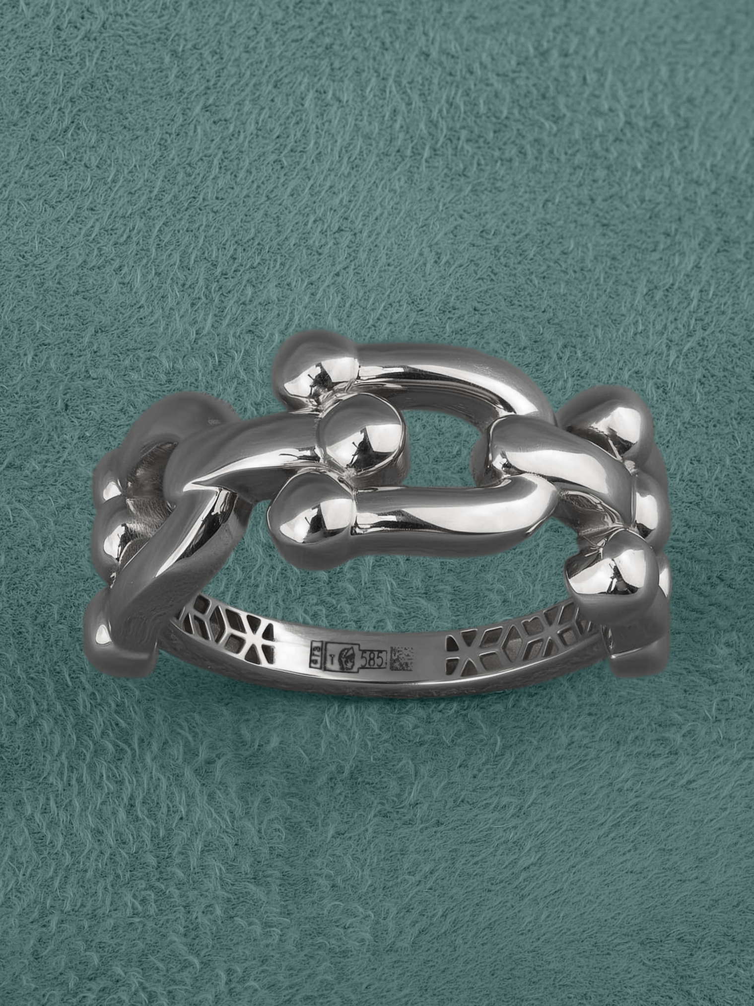 Стильное кольцо из белого золота 585 пробы станет ярким акцентом вашего образа. Дизайн украшения, вдохновленный эстетикой коллекции Vioretty — Techno Chain, отличается необычной геометрией в виде массивных звеньев цепи, что придает изделию современный и дерзкий характер. Гладкая поверхность металла в цвете белый глянец эффектно отражает свет, подчеркивая статусность и высокое качество исполнения. Это украшение создано как унисекс-аксессуар, поэтому гармонично дополнит стиль как женщин, так и мужчин, ценящих лаконичные, но выразительные детали в гардеробе.