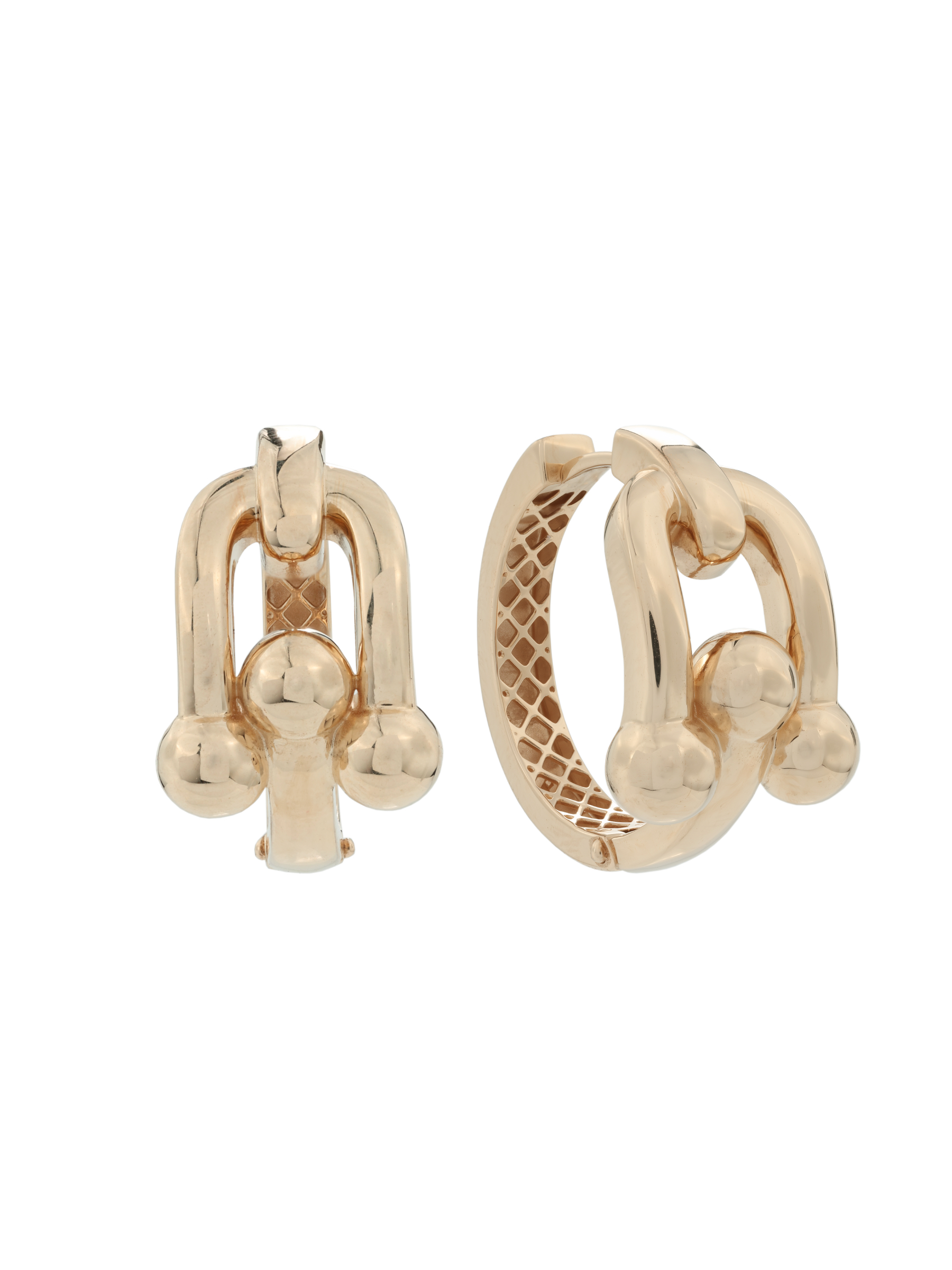 Эти серьги выполнены в универсальном стиле унисекс, поэтому они станут прекрасным дополнением как для женщин, так и для мужчин. Насыщенный цвет материала — красное золото — гармонично сочетается с массивной, но элегантной формой изделия. Застежка обеспечивает надежную фиксацию, позволяя с комфортом носить украшение ежедневно или использовать его для особых случаев.
