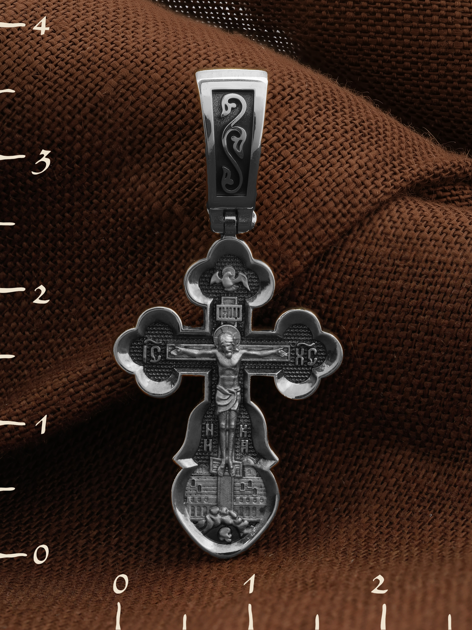 Форма с трехлепестковыми завершениями перекладин, использованная для этого креста, известна на Руси еще со времен Крещения. Она считается древнейшим символом Троицы и Воскресения Христа.