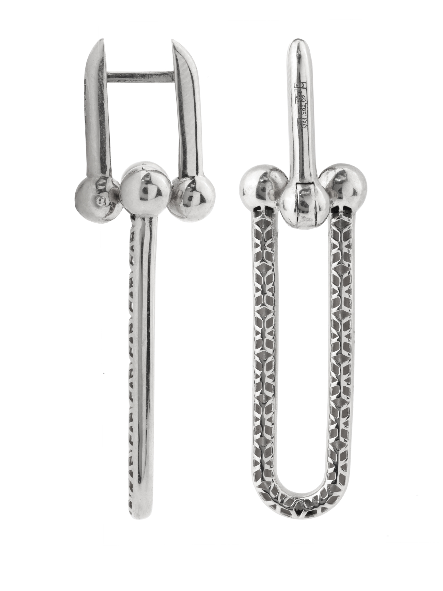 Эти серьги выполнены в белом цвете, что делает их универсальным дополнением к любому образу: от строгого делового костюма до расслабленного вечернего аутфита. Изделие гармонично смотрится как на женщинах, так и на мужчинах, подчеркивая индивидуальность и вкус своего владельца. Особая конструкция позволяет серьгам выглядеть динамично и современно, оставаясь при этом вне времени.