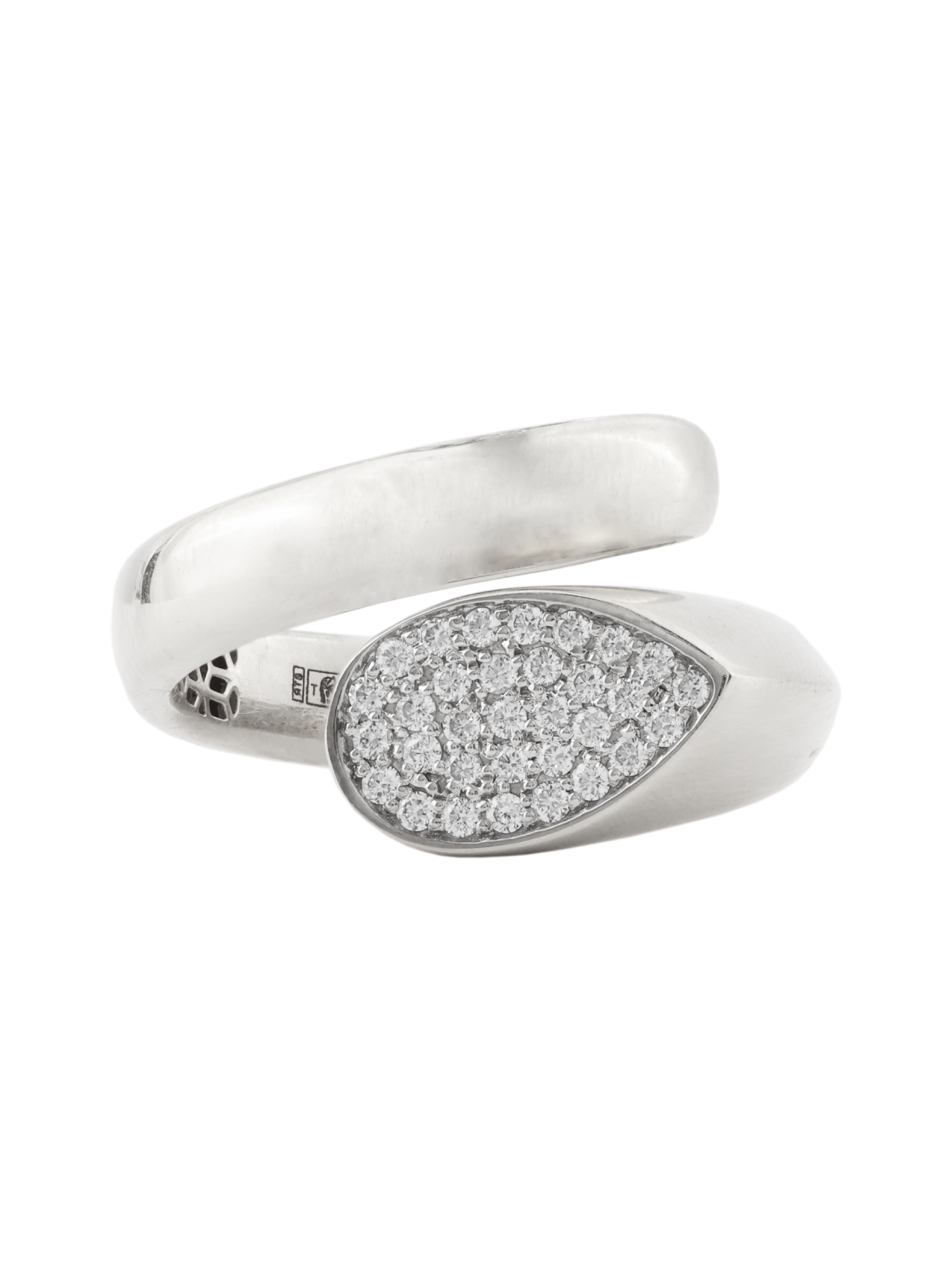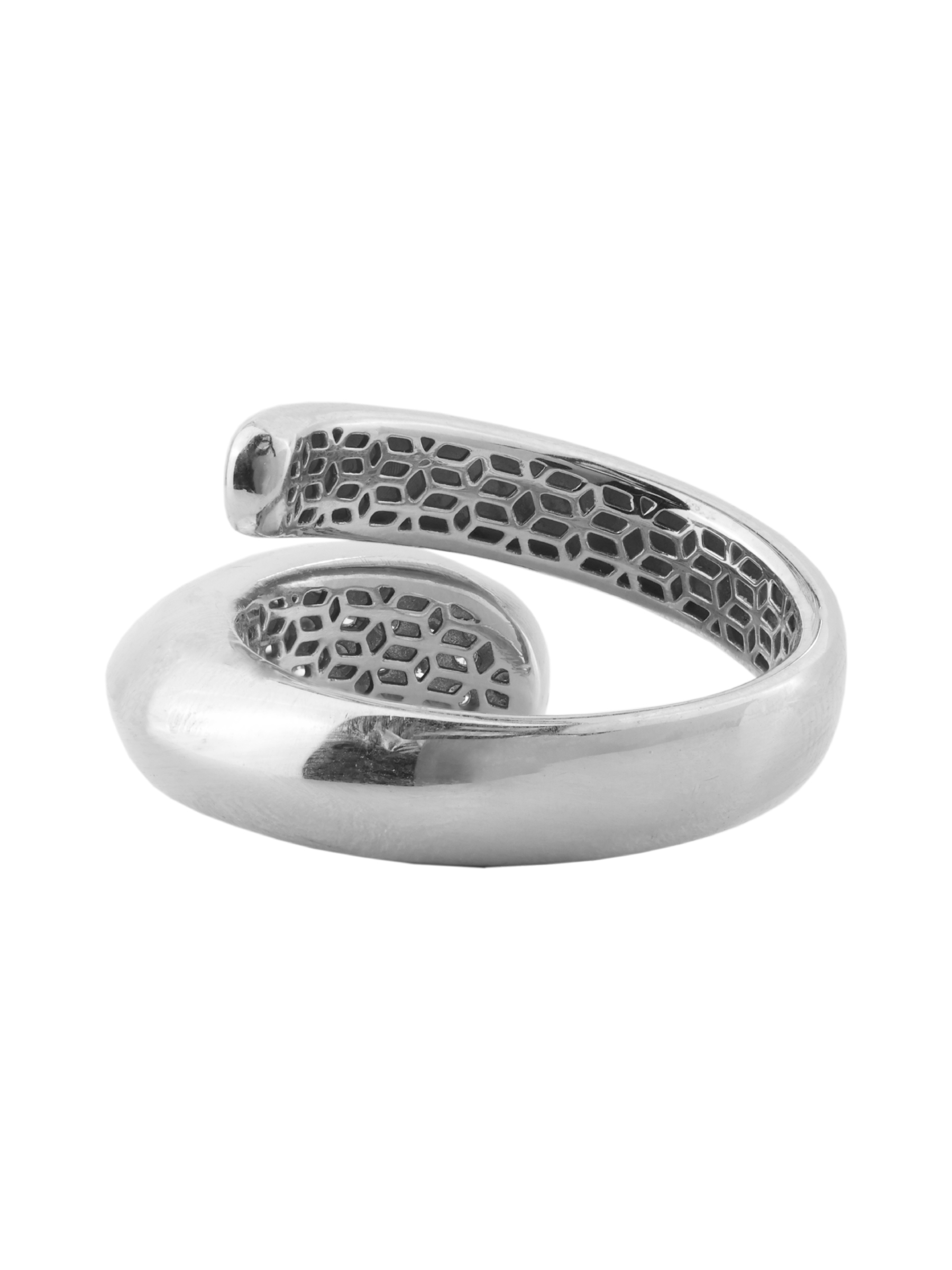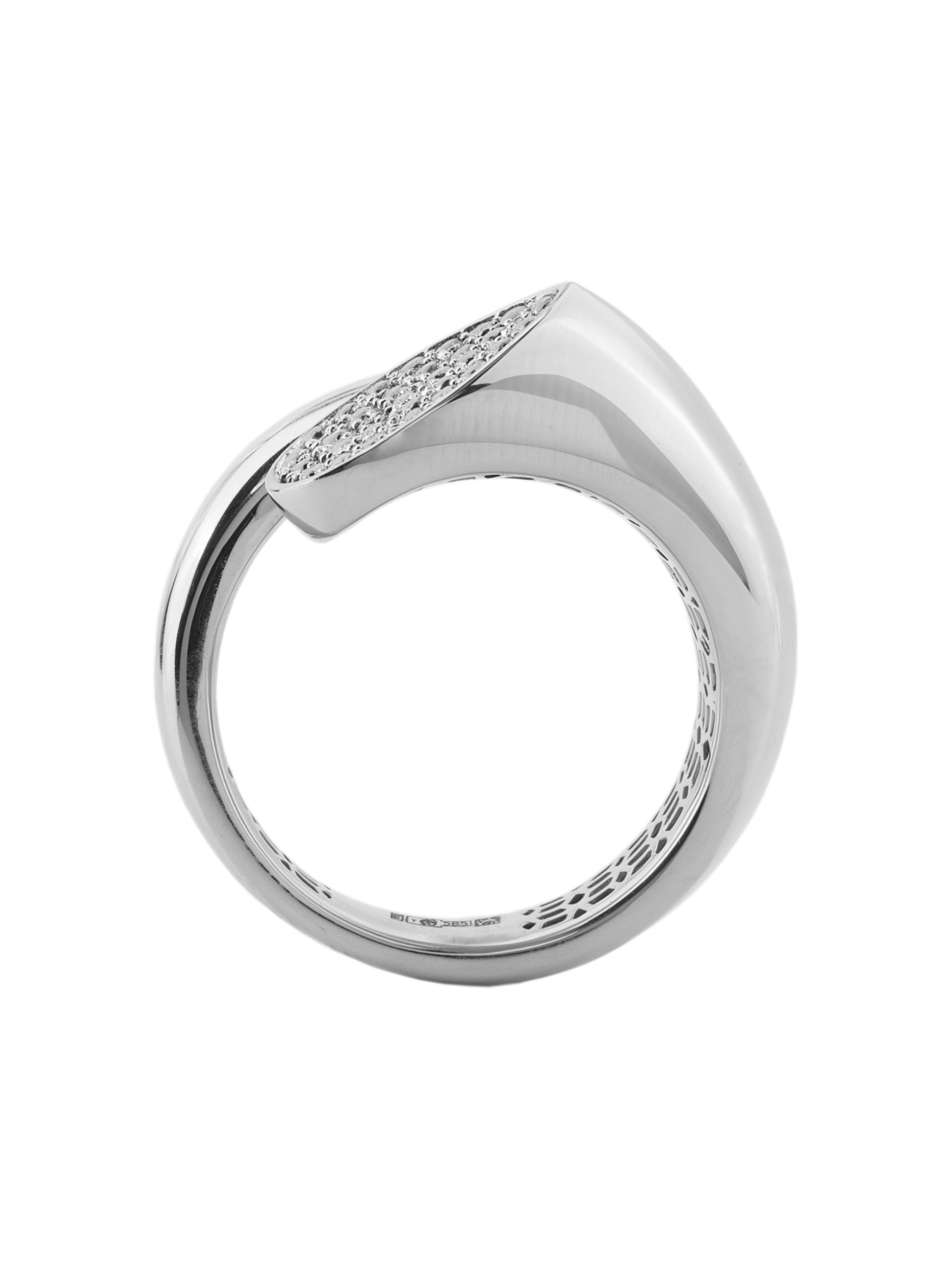 Изысканное кольцо из белого золота 585 пробы станет утонченным акцентом вашего образа. Дизайн, вдохновленный итальянским стилем, подчеркивает статус и безупречный вкус владельца. Ювелирное изделие привлекает внимание своей необычной формой: лаконичная шинка плавно переходит в декоративный элемент, инкрустированный россыпью сияющих камней. Это украшение органично смотрится как на женской, так и на мужской руке, становясь универсальным дополнением любого стиля.