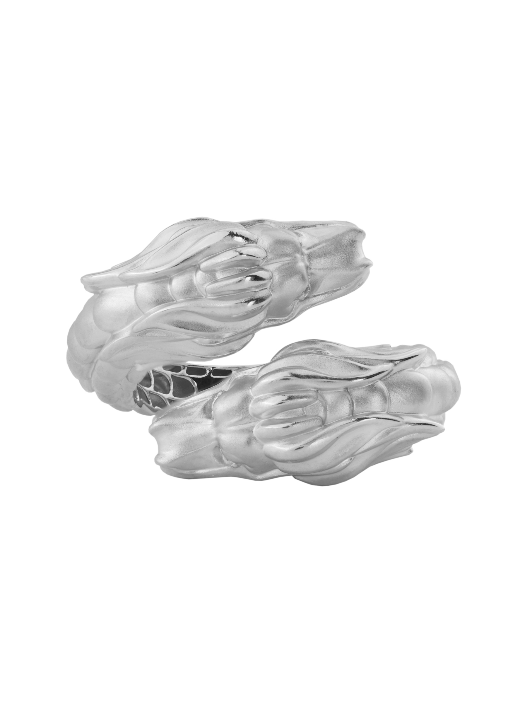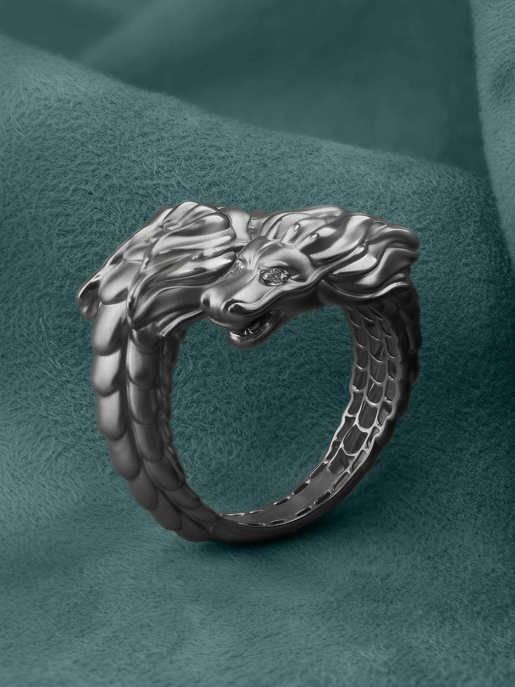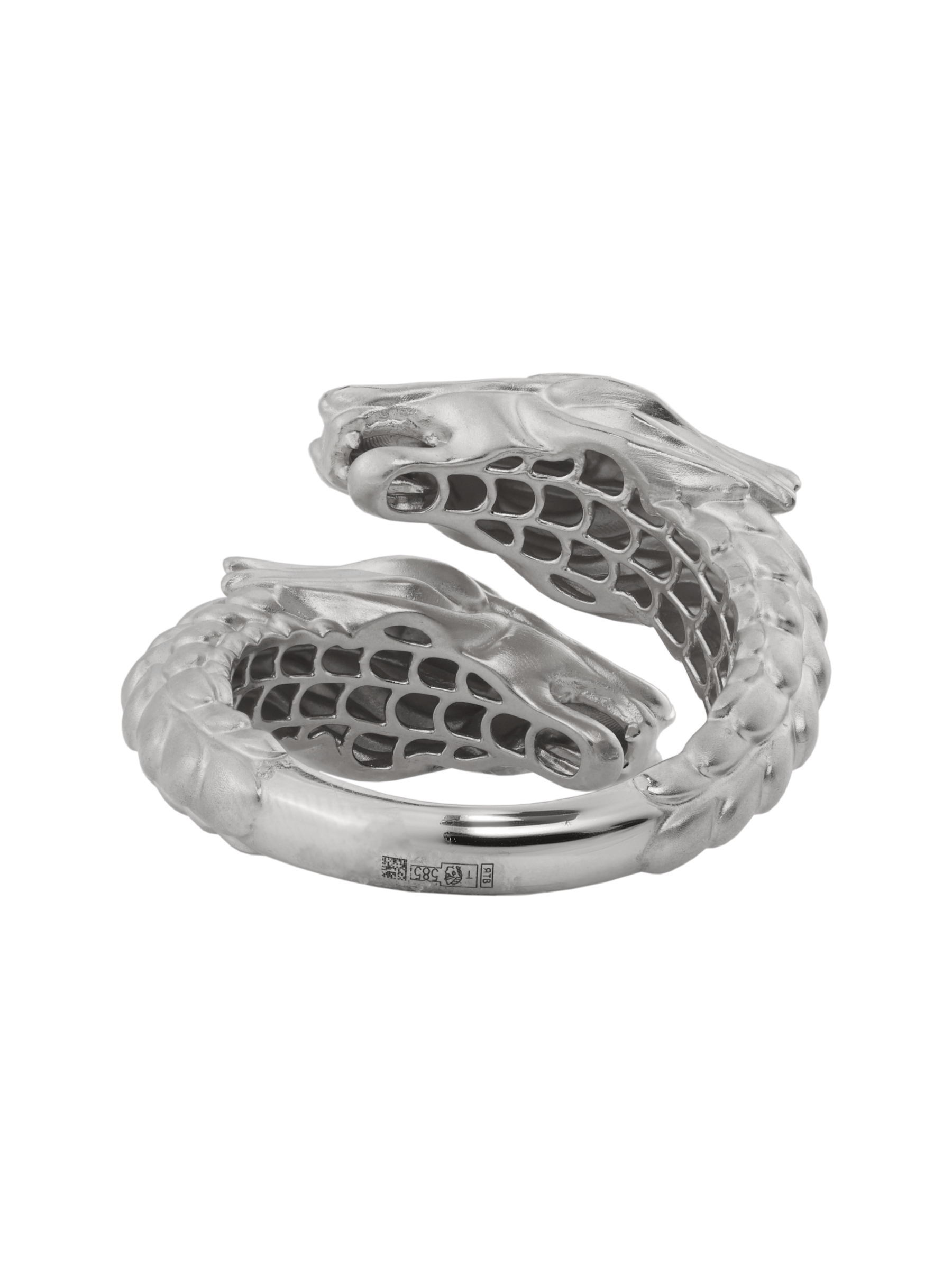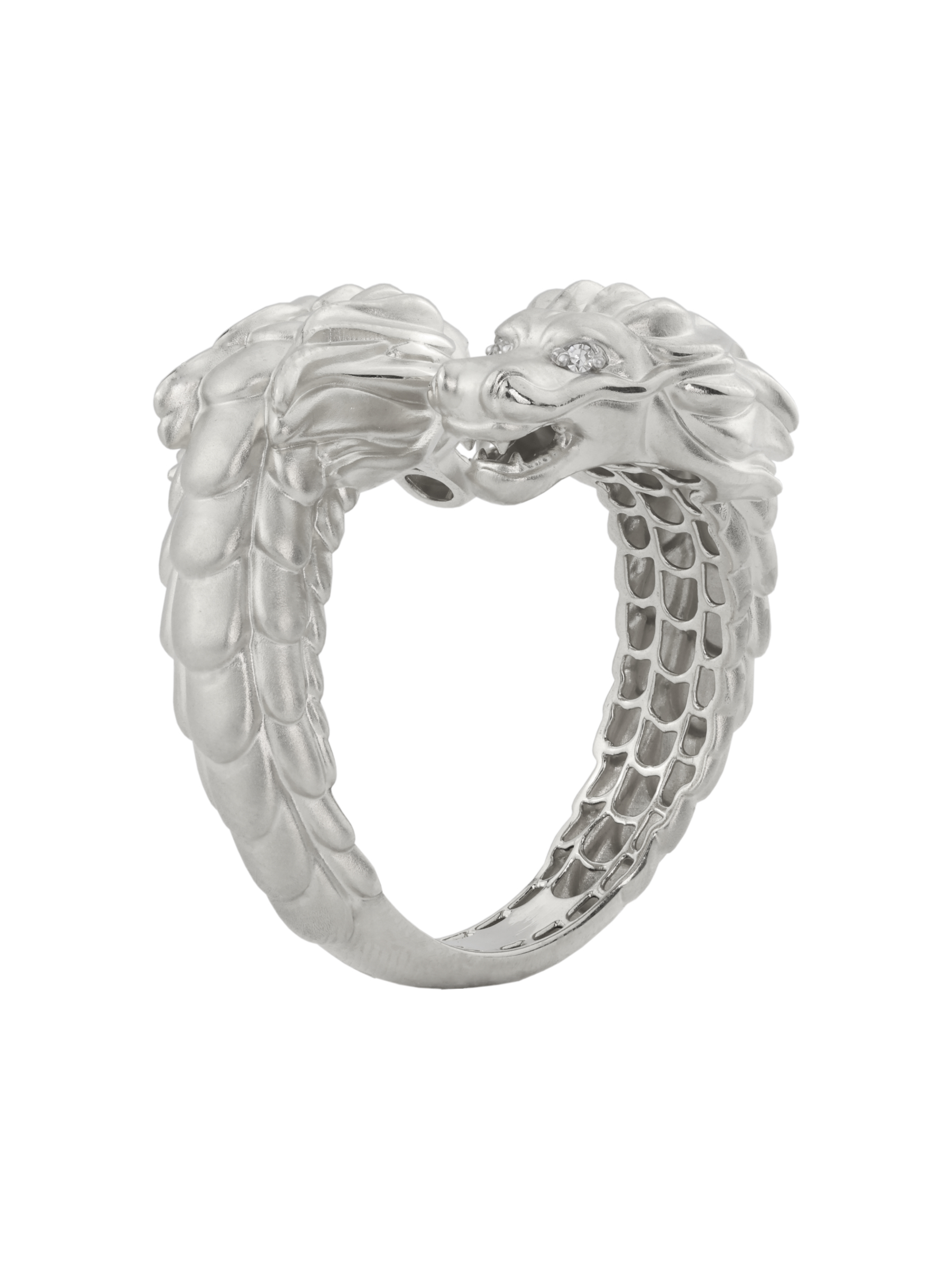 Композиция дополнена вставками: 4 бриллианта круглой формы с чистым белым цветом красиво отражают свет, создавая благородное сияние. Матовое белое золото придает кольцу сдержанный, но притягательный вид, подчеркивая безупречность линий дракона. Это украшение создано для тех, кто ценит индивидуальность и предпочитает аксессуары с характером.