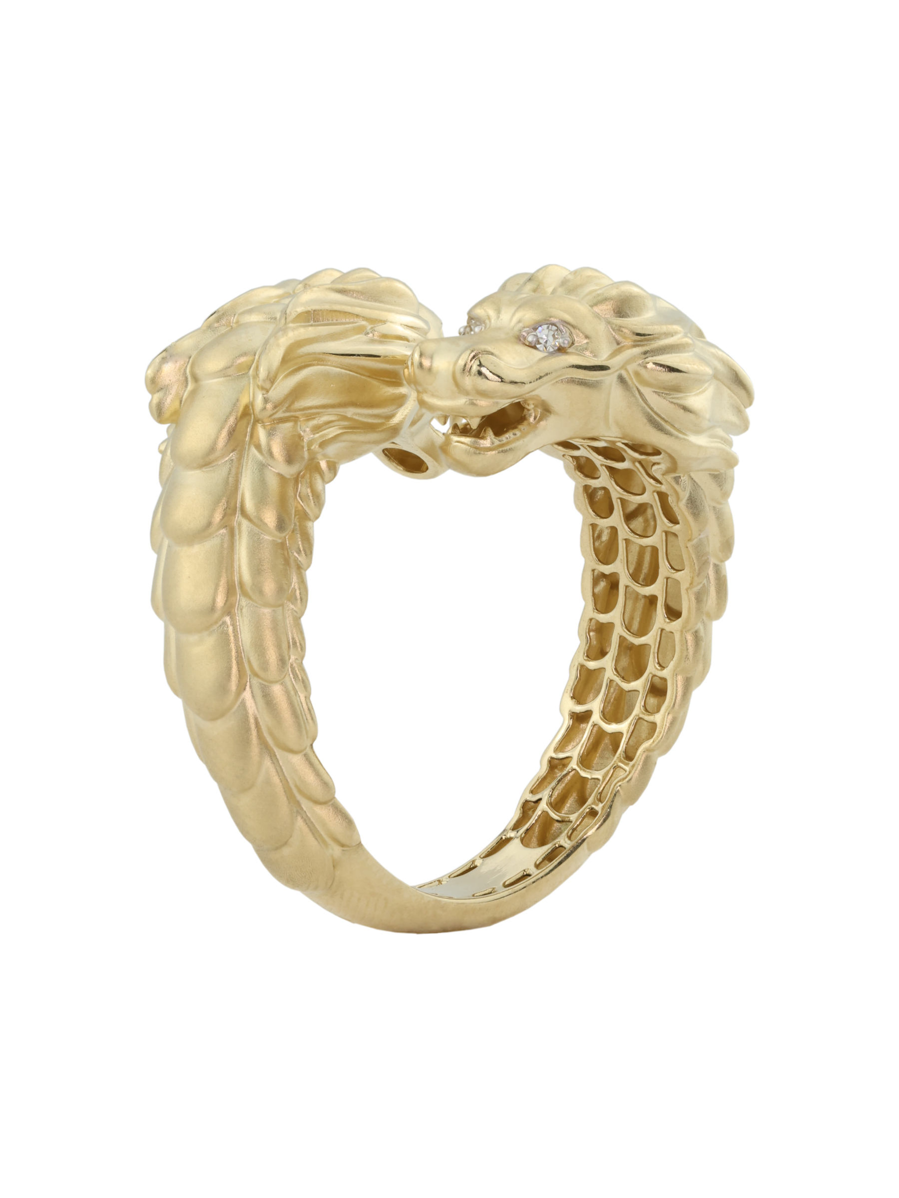 Украшение декорировано 4 бриллиантами круглой огранки с белым сиянием, которые акцентируют внимание на выразительном взгляде дракона. Это кольцо универсально: дизайн подходит как для женщин, так и для мужчин, желающих дополнить свой образ ярким и статусным аксессуаром. Массивное, но изящное исполнение позволяет носить его как в повседневной жизни, так и по особенным случаям.