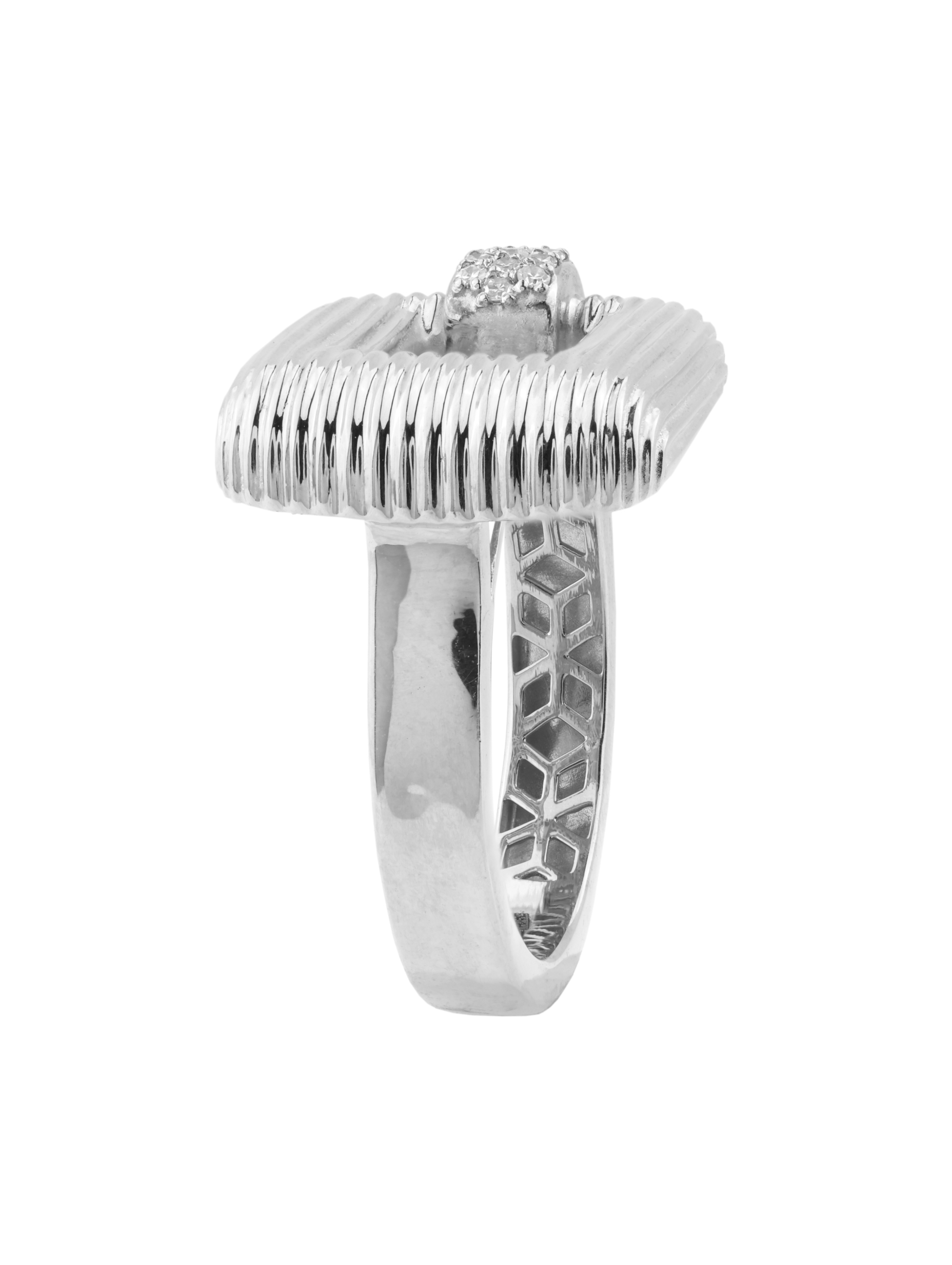 Элегантное кольцо из белого золота 585 пробы из коллекции Vioretty — Milano станет безупречным акцентом вашего образа. Это ювелирное изделие воплощает в себе изысканный итальянский стиль, сочетая в себе строгость линий и роскошное сияние драгоценных камней. Основа из благородного белого металла с глубокой рельефной фактурой создает интересный визуальный контраст с изящным акцентом из 37 бриллиантов круглой огранки. Белоснежные камни гармонично подчеркивают холодный блеск золота, придавая украшению особое статусное звучание.
