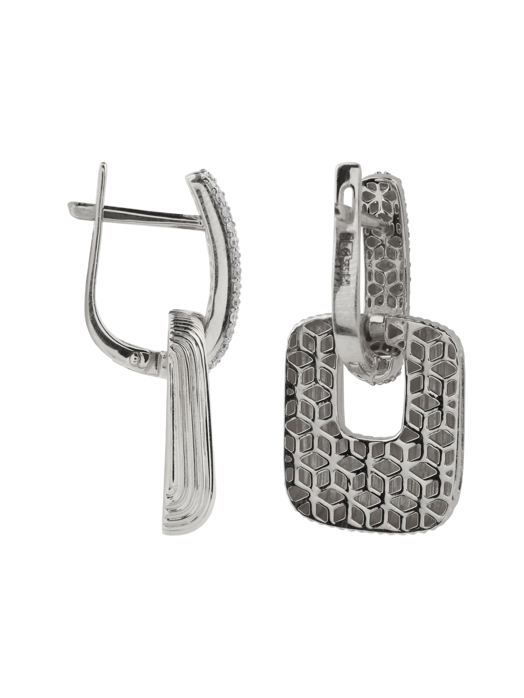 В украшении использованы 92 бриллианта круглой формы с чистым белым цветом вставок, которые при каждом движении создают эффектную игру света. Эти серьги — не просто аксессуар, а стилеобразующий акцент, который подойдет как женщинам, так и мужчинам, предпочитающим современные и статусные украшения. Универсальность дизайна позволяет носить их как самостоятельный аксессуар, так и в составе комплекта, создавая завершенный и продуманный ювелирный ансамбль. Качественная проработка деталей и благородные материалы делают данное изделие прекрасным выбором для ценителей высокого ювелирного искусства.