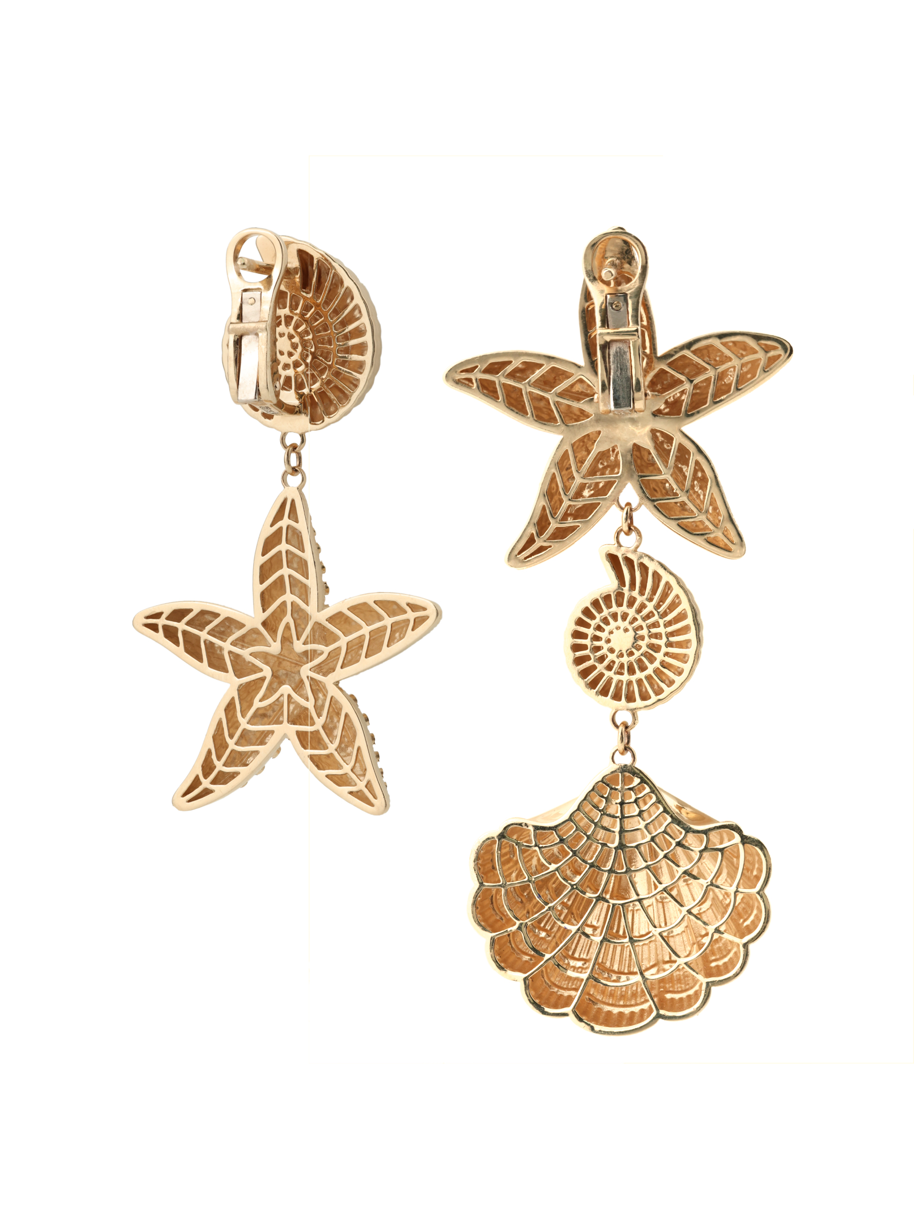 Мастерская работа с красным золотом подчеркивает естественное сияние металла, делая каждую деталь — от завитков раковины до текстуры звезд — невероятно реалистичной и объемной. Эти серьги созданы для тех, кто ценит неординарные аксессуары с глубоким смыслом и художественным исполнением. Универсальность дизайна позволяет носить их как женщинам, так и мужчинам, предпочитающим смелые и статусные украшения.