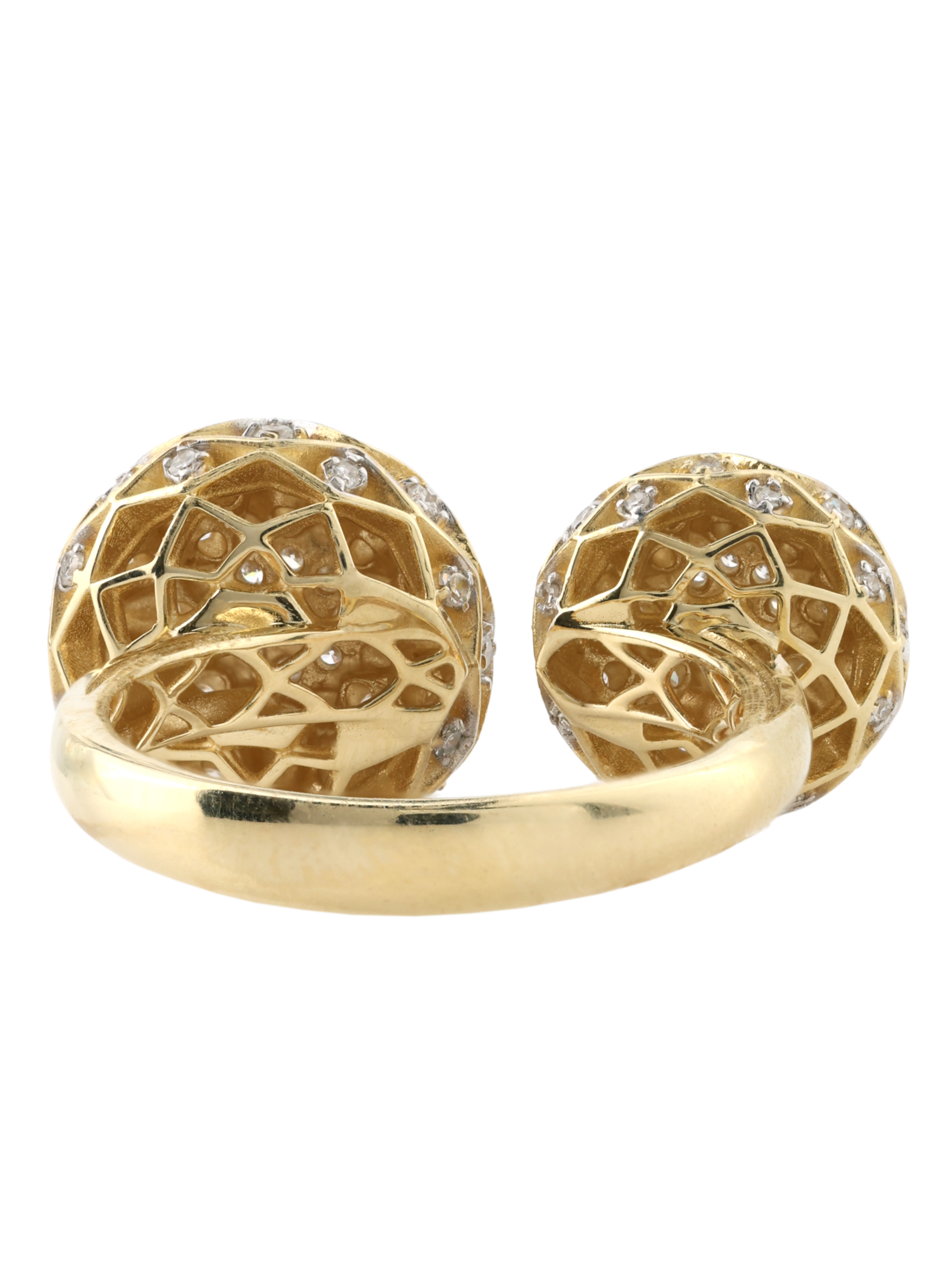 Роскошное сияние лимонного золота гармонично дополнено 82 бриллиантами круглой огранки. Белый цвет вставок ярко контрастирует с теплым оттенком драгоценного металла, создавая игру света при каждом движении руки. Мастерское исполнение и внимание к каждой линии делают это кольцо великолепным выбором для тех, кто ценит эксклюзивные вещи. Данная модель универсальна и подходит как для женщин, так и для мужчин, желающих дополнить свой стиль статусным аксессуаром.
