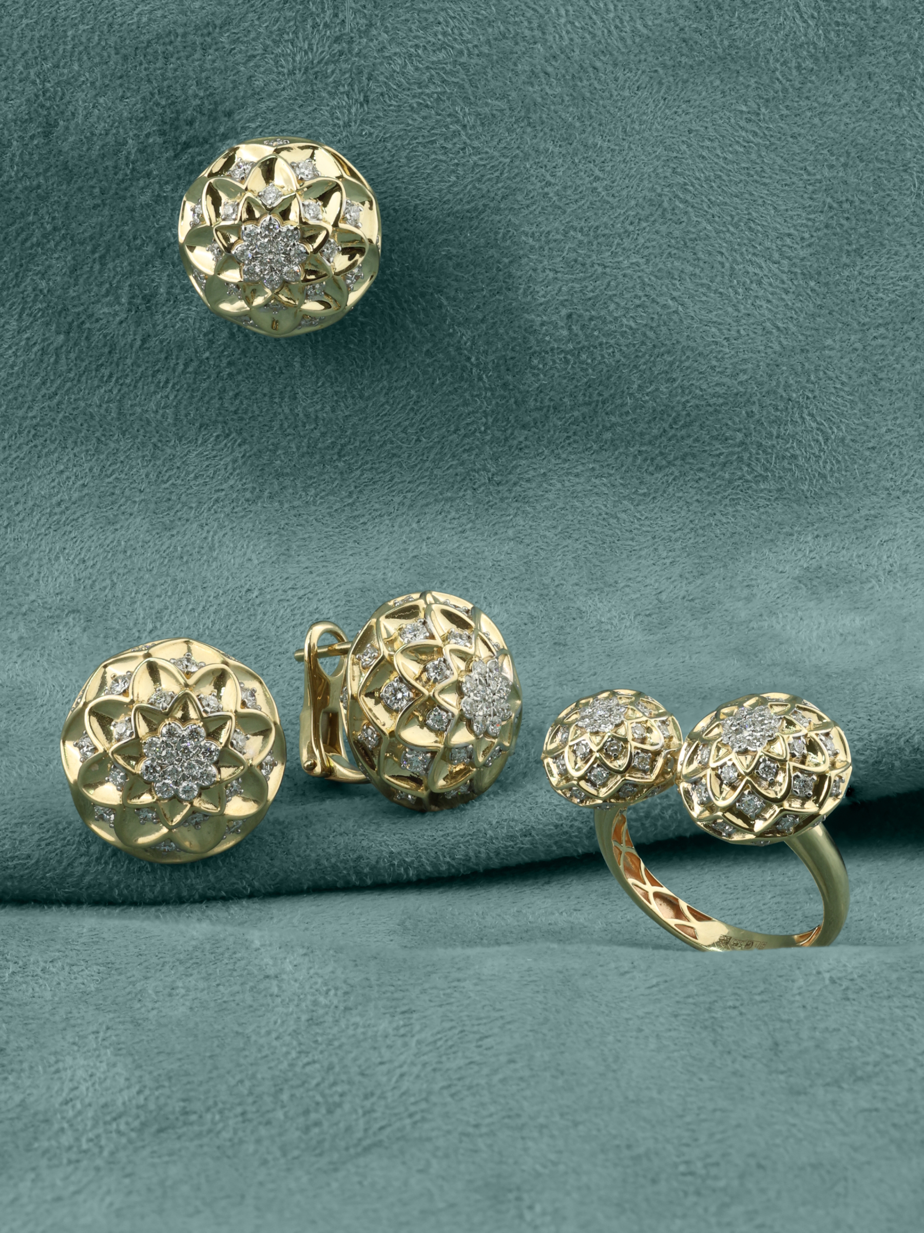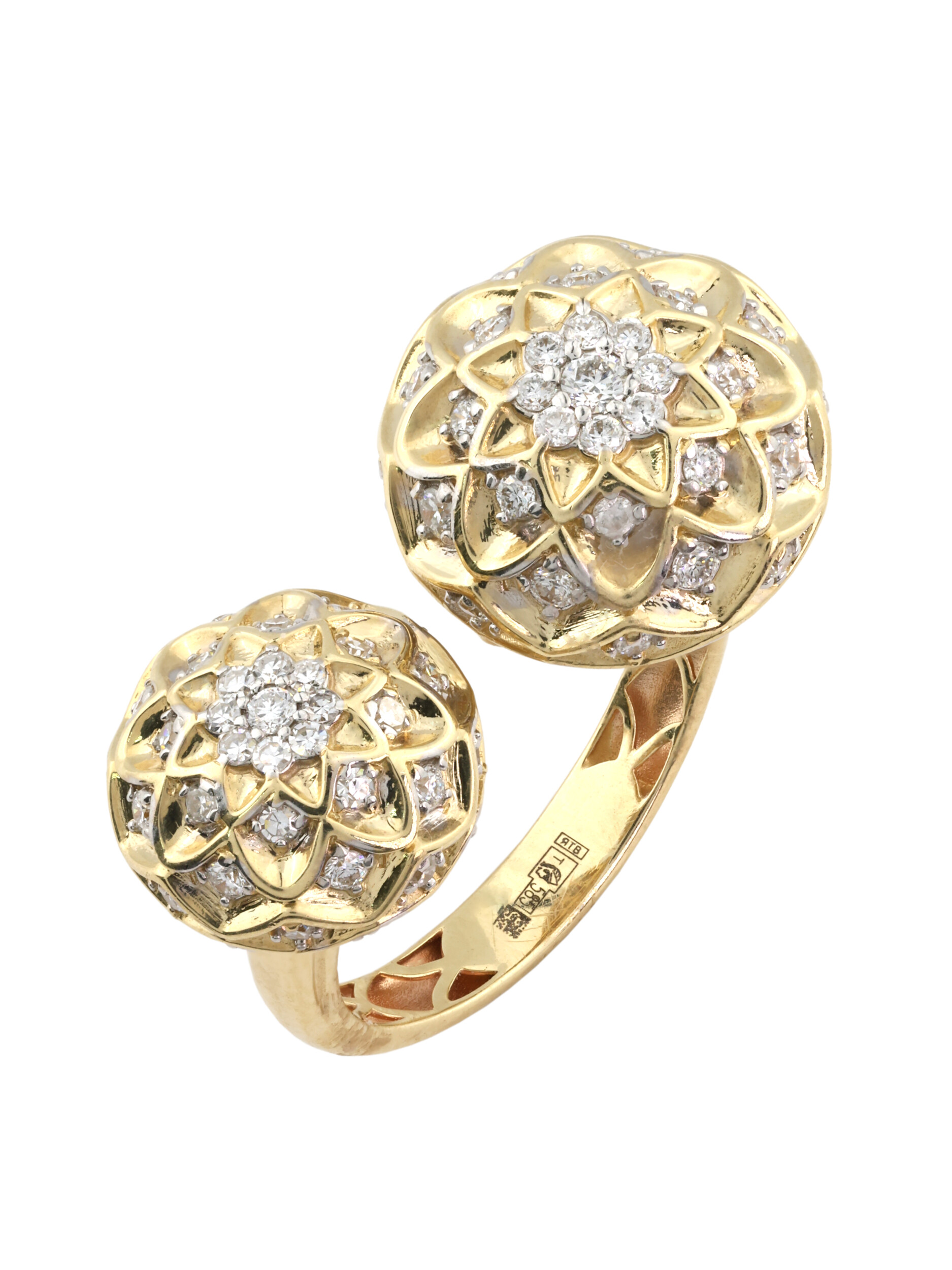 Элегантное кольцо из лимонного золота 585 пробы станет центральным акцентом вашего образа, подчеркивая безупречный вкус и статус. Это изысканное украшение из коллекции Vioretty — Georginy выполнено в оригинальном дизайне, вдохновленном природными мотивами: два объемных цветка, расположенных на разомкнутой шинке, создают динамичную и современную композицию. Необычная форма изделия привлекает внимание к его деталям, превращая ювелирное украшение в настоящее произведение искусства.