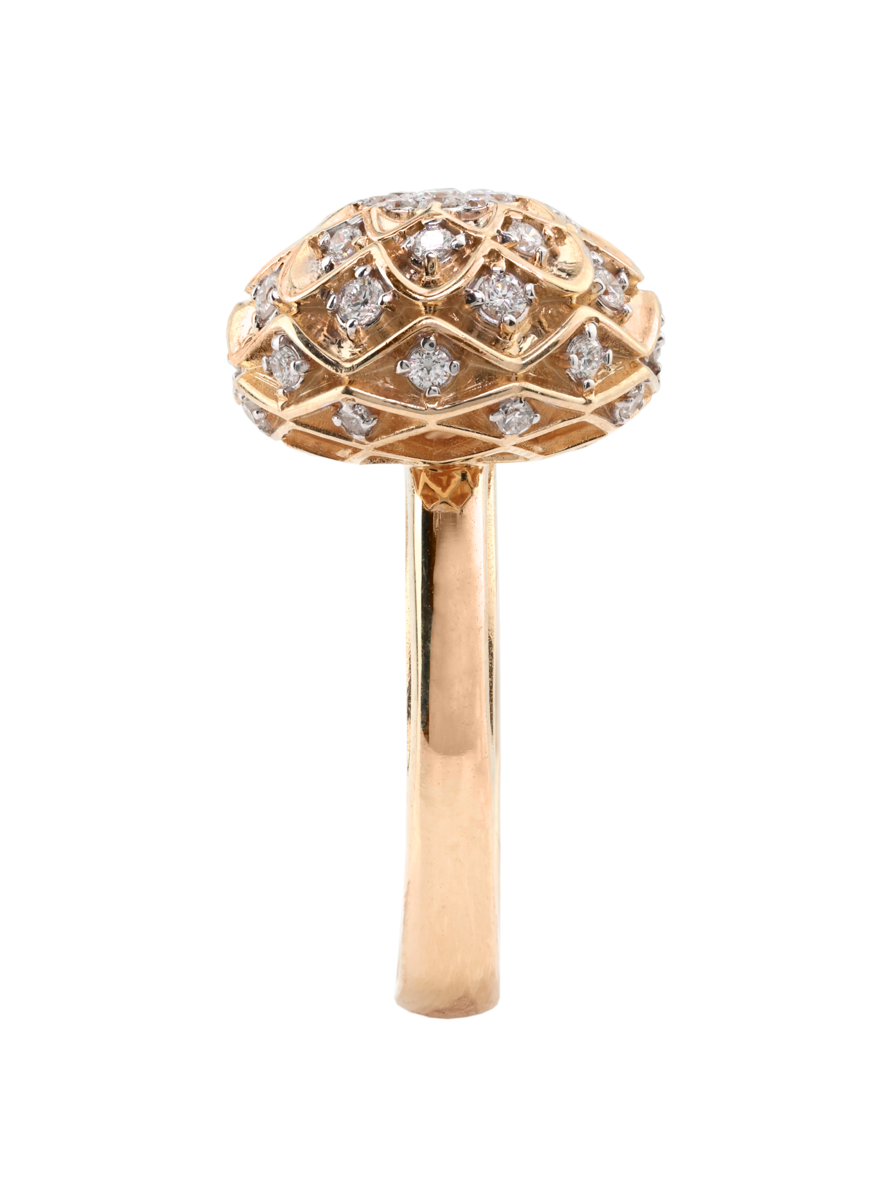 Роскошное сочетание драгоценного металла теплого оттенка и сияющих камней придает украшению особое очарование. Благодаря своей универсальности и стилистической выразительности, кольцо подходит как для женщин, так и для мужчин, предпочитающих статусные аксессуары. Изделие представлено в размерном ряду: 16, 16.5, 17, 17.5, 18, 18.5.