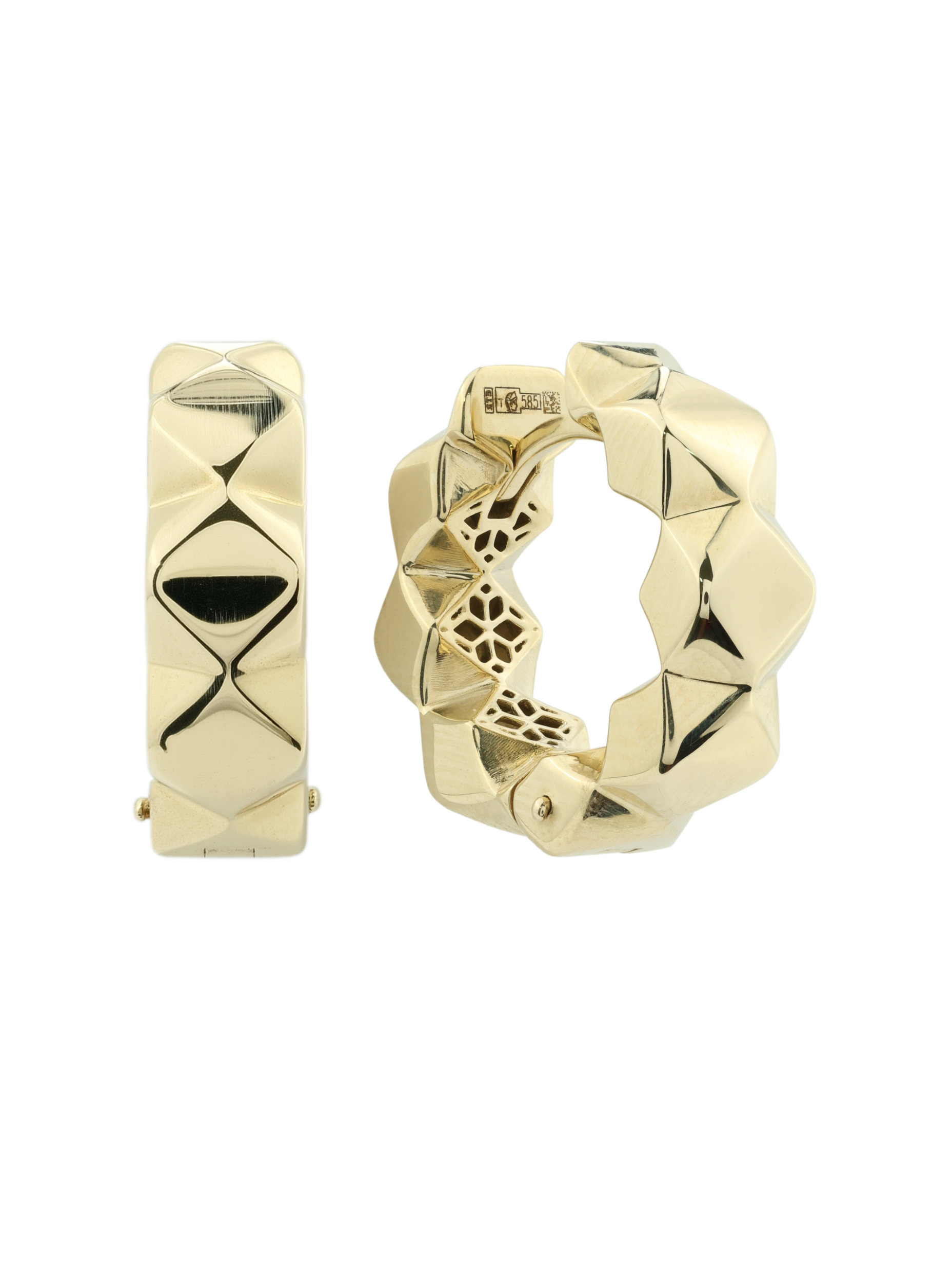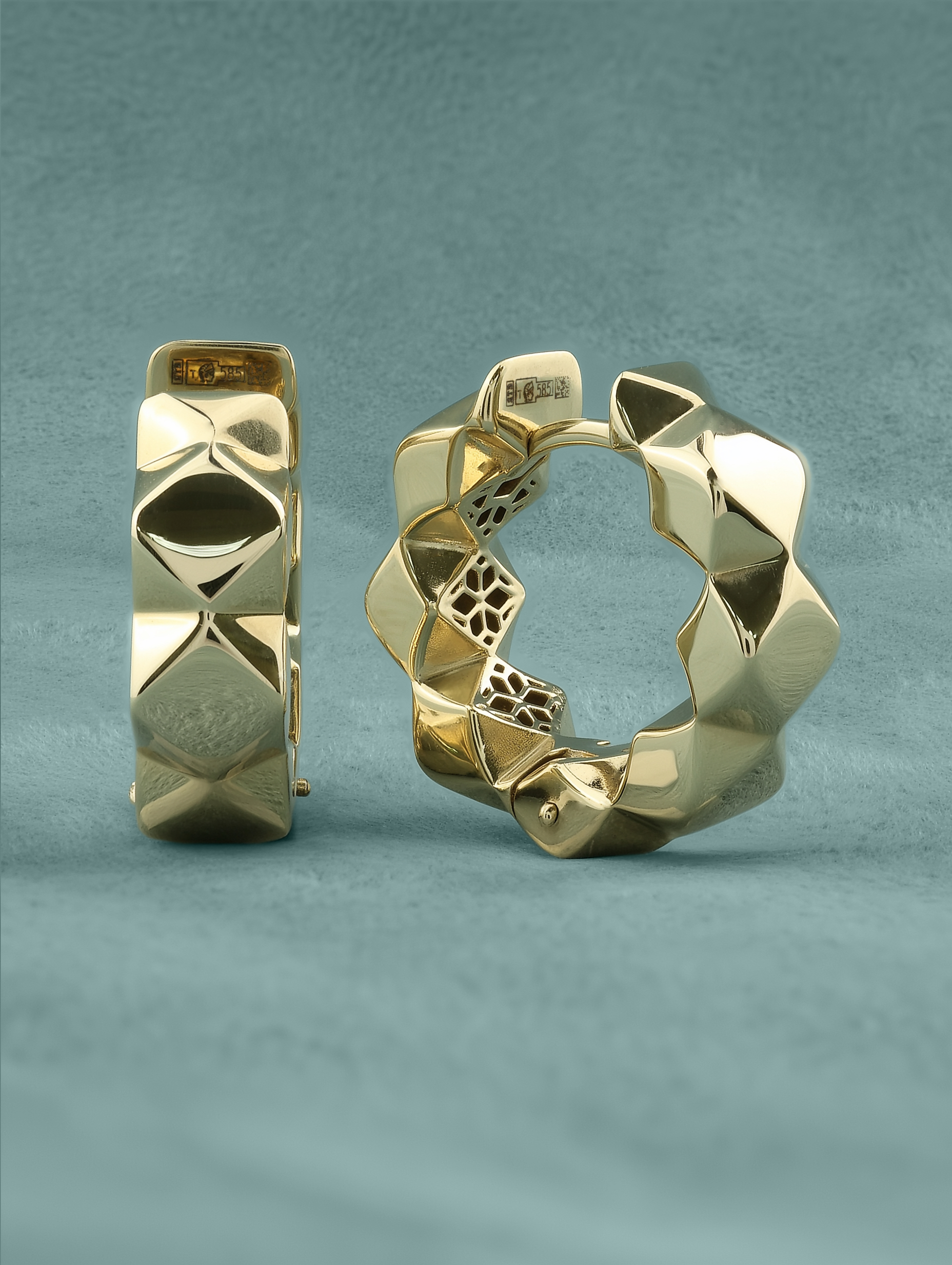 Эти серьги созданы как универсальный аксессуар, который одинаково гармонично дополнит стиль женщин и мужчин, ценящих лаконичность и архитектурную точность в украшениях. Конструкция изделия продумана до мелочей: надежный замок обеспечивает комфортное ежедневное ношение, а уникальная фактура внутренней части, выполненная в виде сетчатого орнамента, добавляет глубины и подчеркивает высокое мастерство исполнения.