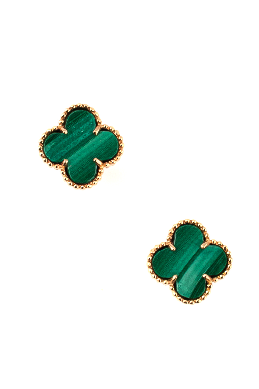 Дизайн в форме клевера — это символ, который никогда не теряет своей актуальности. Лаконичная и узнаваемая геометрия позволяет этим серьгам гармонично дополнить как повседневный деловой образ, так и вечерний наряд. В изделии использованы 2 вставки из малахита, которые надежно закреплены в оправе из красного золота.